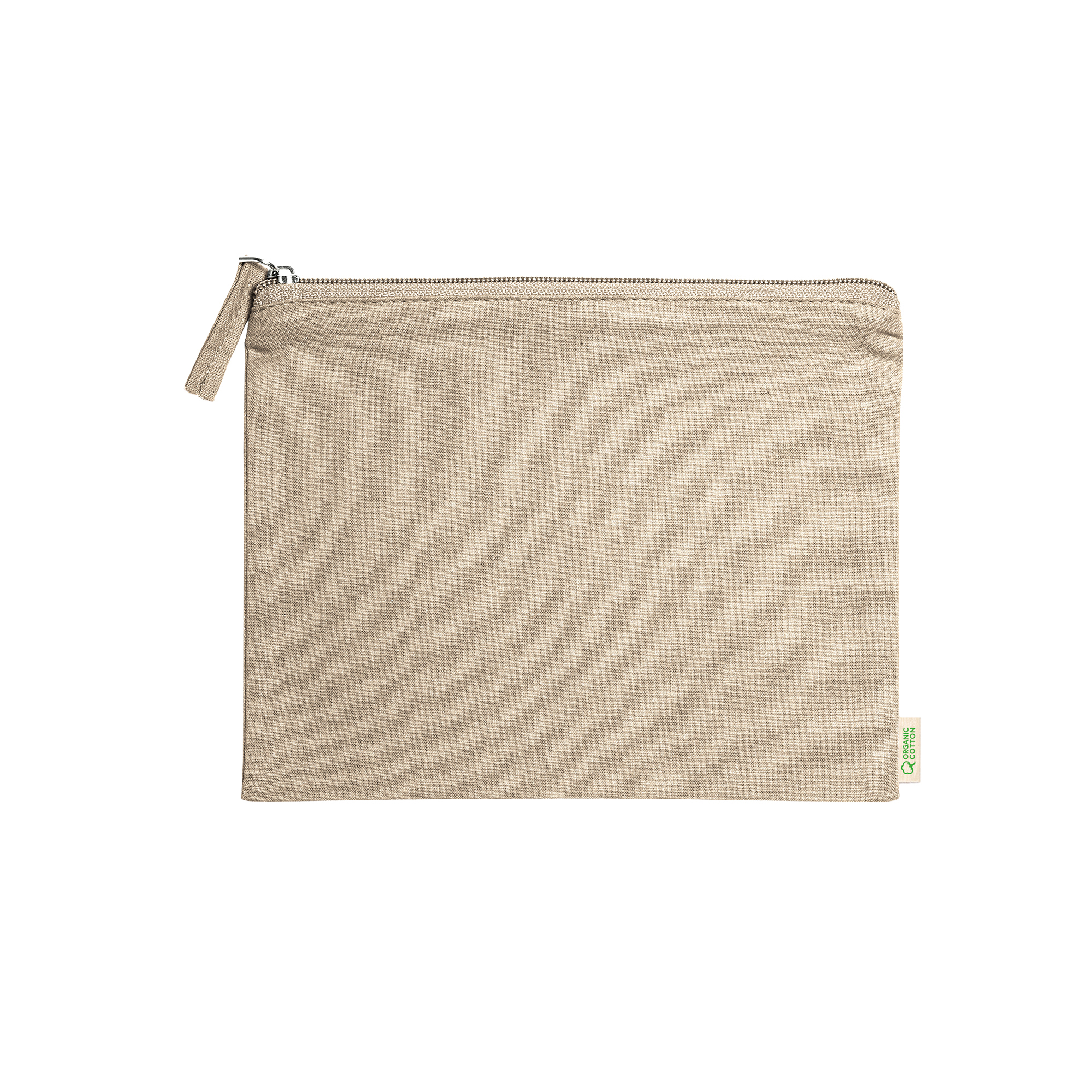 Beauty case, 100% cotone biologico,  180 g/m², tiretto abbinato, cerniera, misure 21cm x 16cm, 5 colori