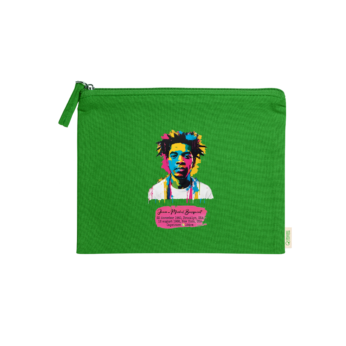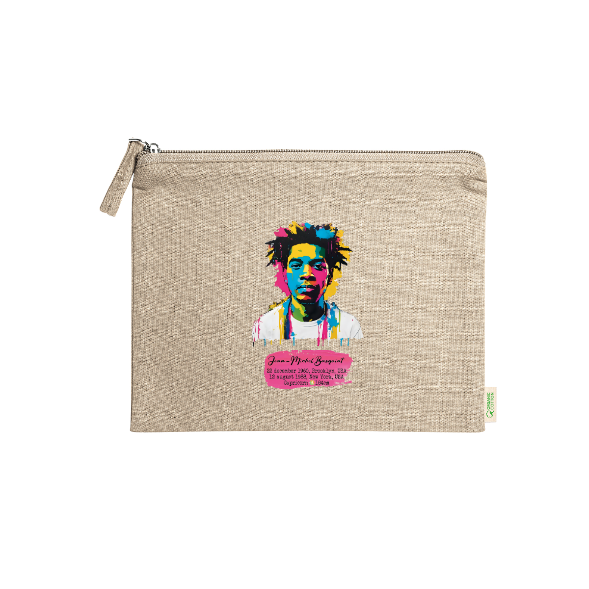 Beauty case, 100% cotone biologico,  180 g/m², tiretto abbinato, cerniera, misure 21cm x 16cm, 5 colori
