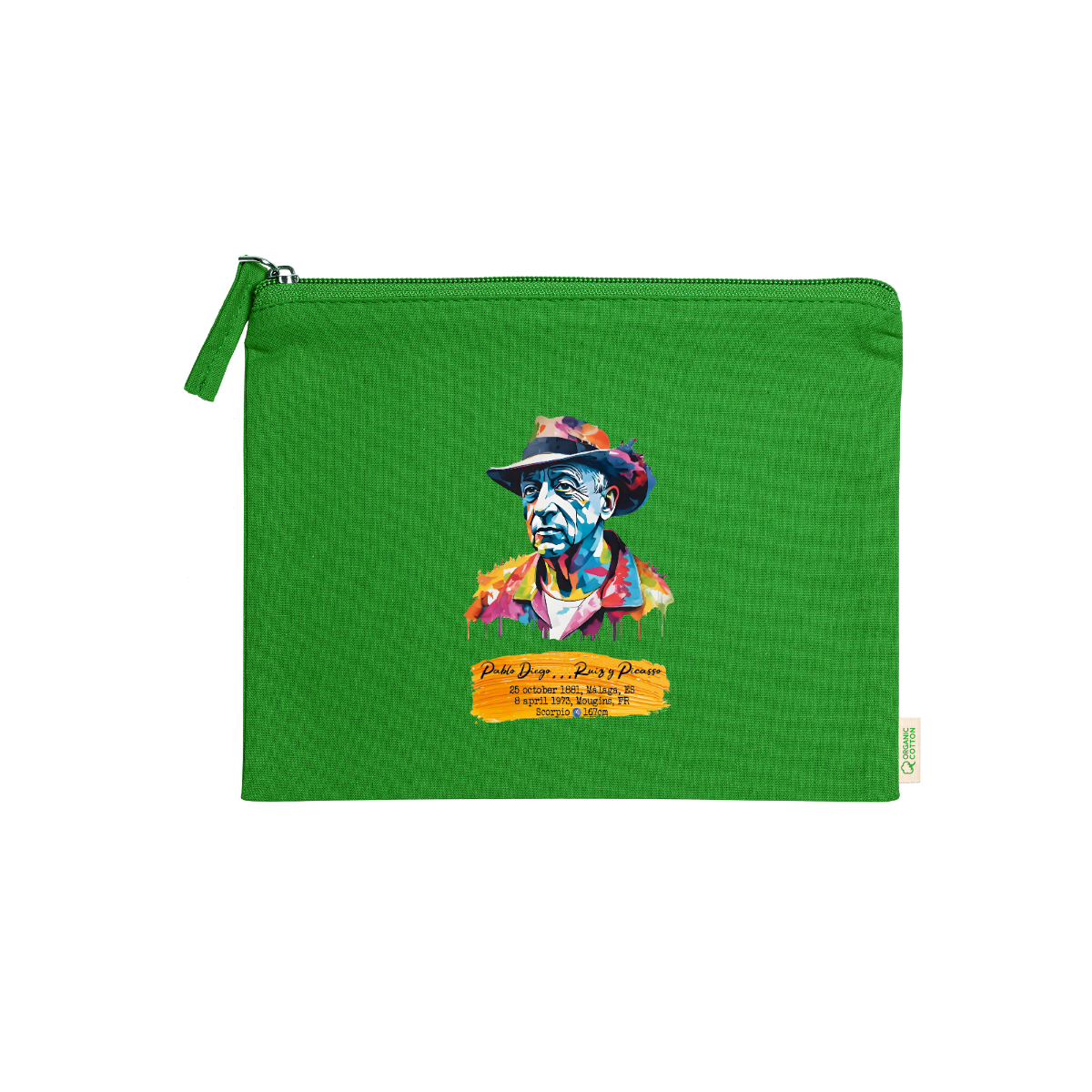 Beauty case, 100% cotone biologico,  180 g/m², tiretto abbinato, cerniera, misure 21cm x 16cm, 5 colori