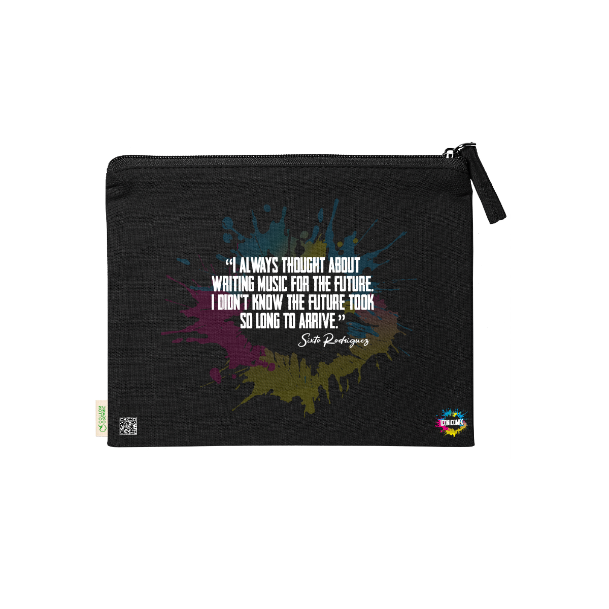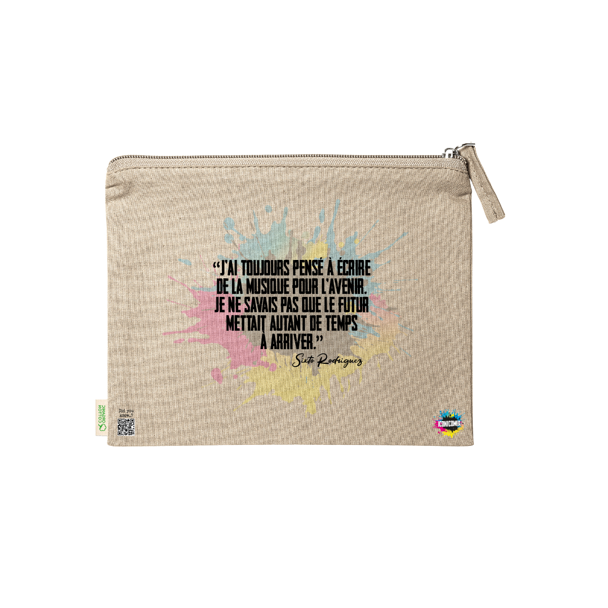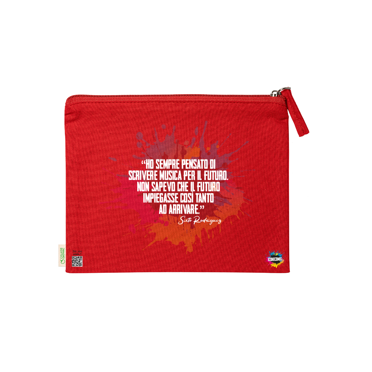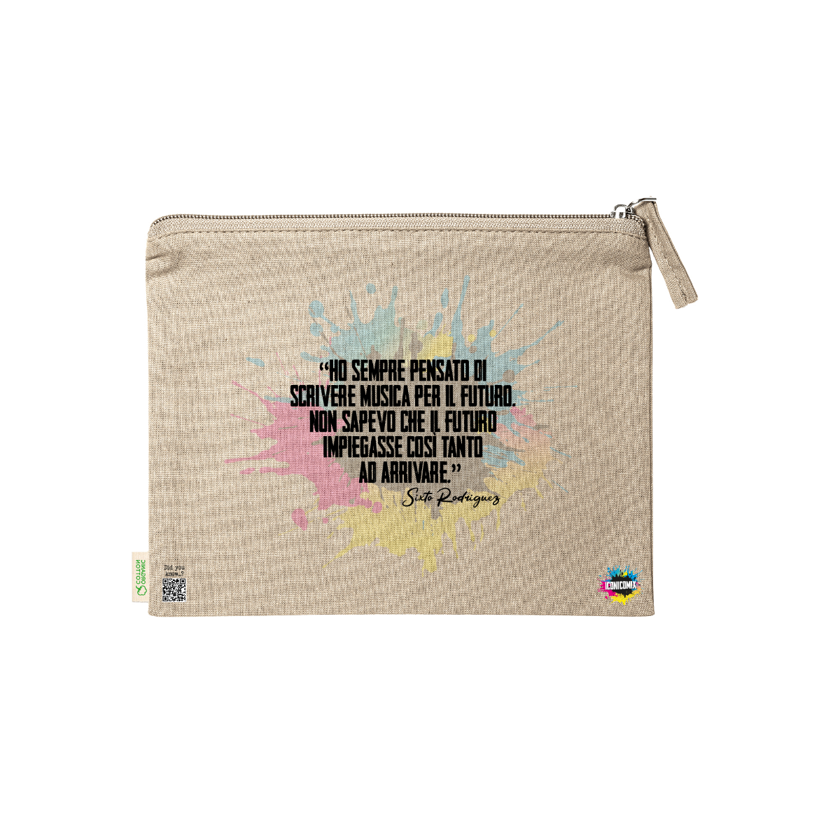 In ogni nostra grafica è presente anche un QR code che reindirizza al sito iconicomix.com, alla pagina ufficiale dell’icona che hai scelto. Una porta digitale che racconta la sua storia, le sue frasi e il suo mondo.