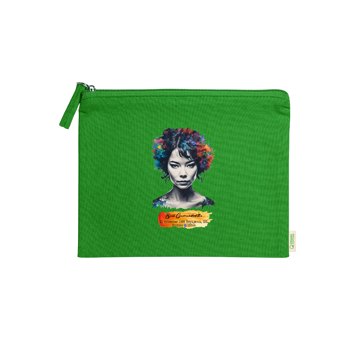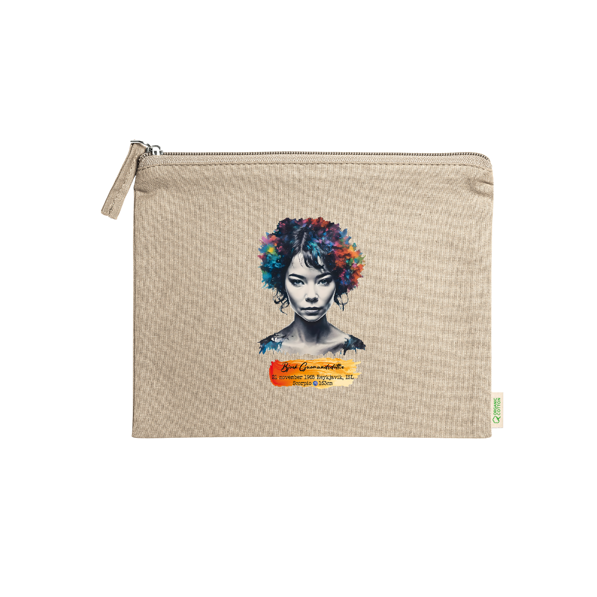 Beauty case, 100% cotone biologico,  180 g/m², tiretto abbinato, cerniera, misure 21cm x 16cm, 5 colori