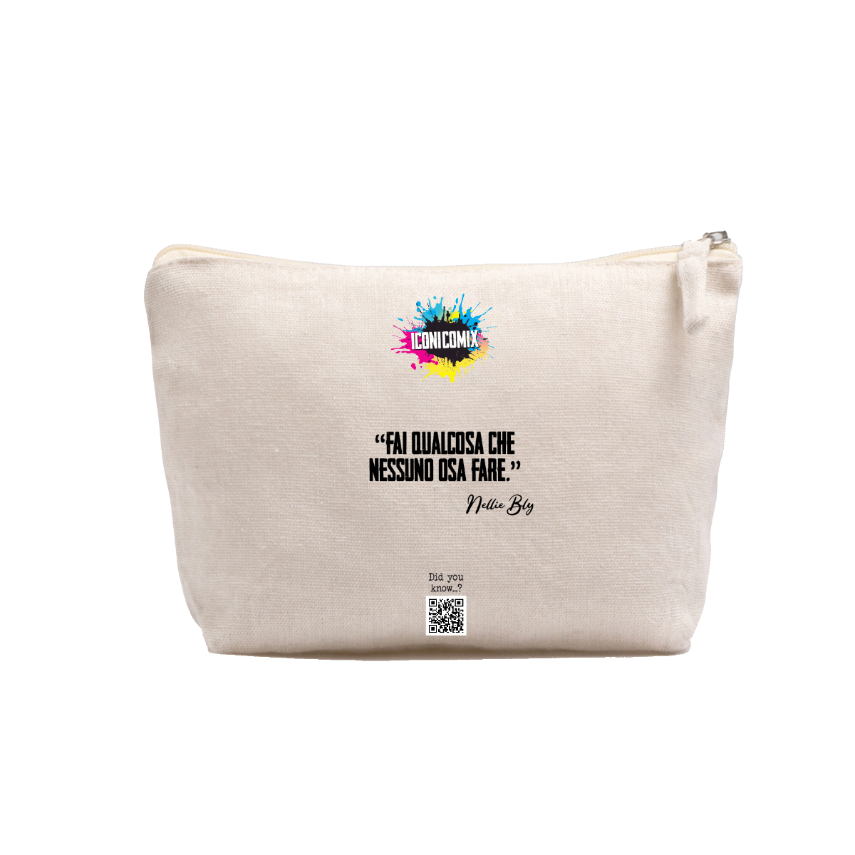 In ogni nostra grafica è presente anche un QR code che reindirizza al sito iconicomix.com, alla pagina ufficiale dell’icona che hai scelto. Una porta digitale che racconta la sua storia, le sue frasi e il suo mondo.