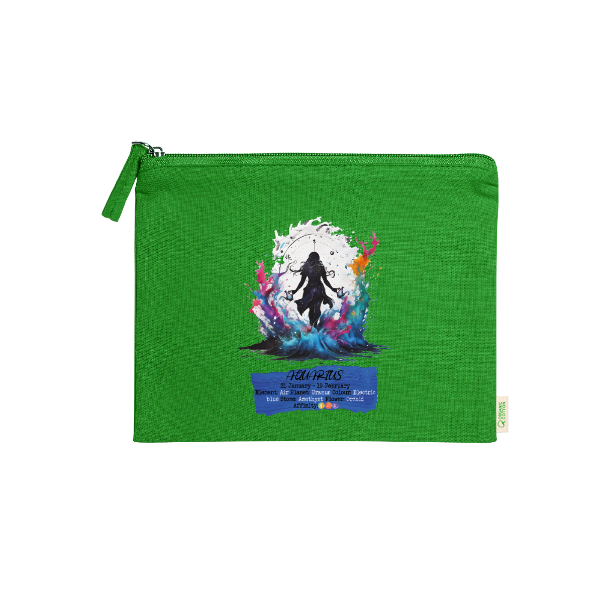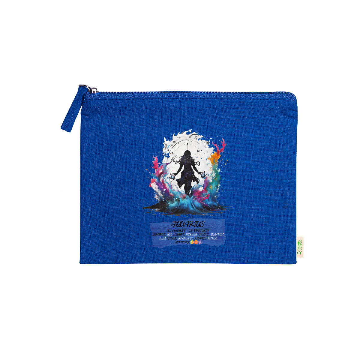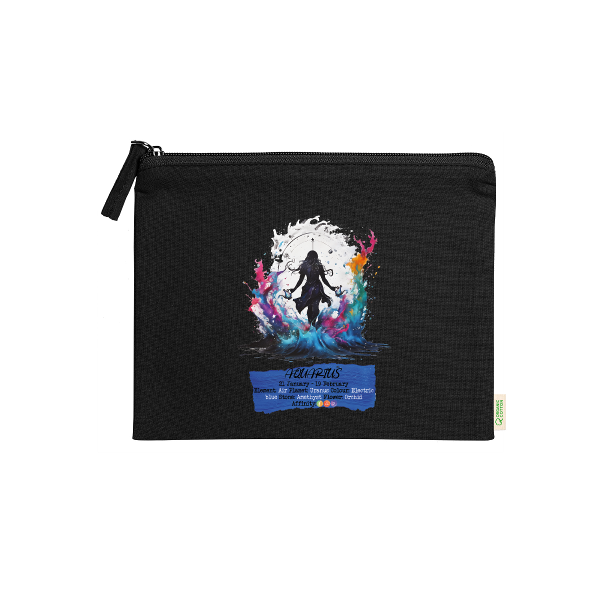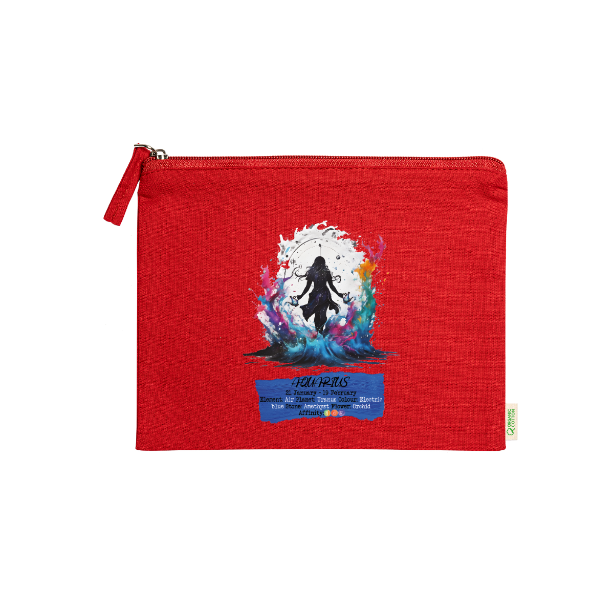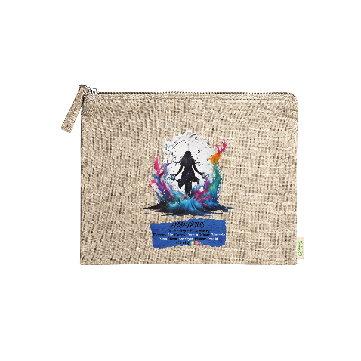 Beauty case, 100% cotone biologico,  180 g/m², tiretto abbinato, cerniera, misure 21cm x 16cm, 5 colori