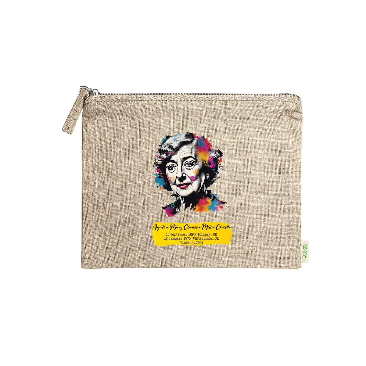 Beauty case, 100% cotone biologico,  180 g/m², tiretto abbinato, cerniera, misure 21cm x 16cm, 5 colori