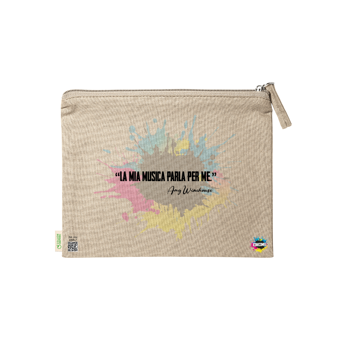 In ogni nostra grafica è presente anche un QR code che reindirizza al sito iconicomix.com, alla pagina ufficiale dell’icona che hai scelto. Una porta digitale che racconta la sua storia, le sue frasi e il suo mondo.