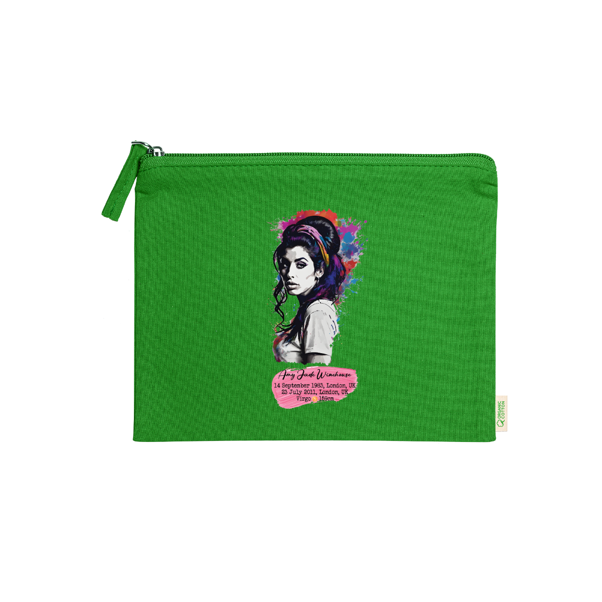 Beauty case, 100% cotone biologico,  180 g/m², tiretto abbinato, cerniera, misure 21cm x 16cm, 5 colori