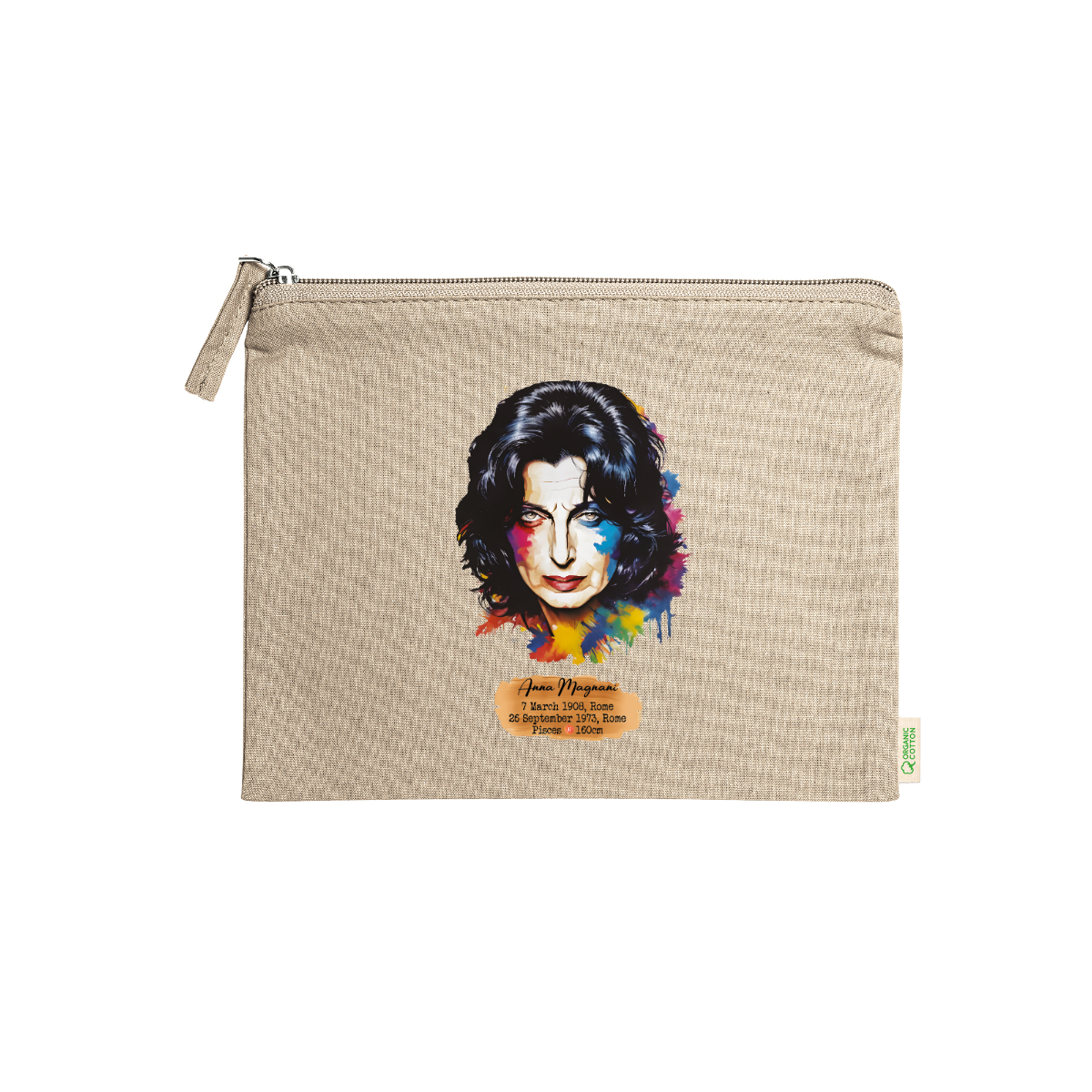 Neceser, 100% algodón orgánico, 180 g/m², tirador de cremallera a juego, 21 cm x 16 cm, 5 colores