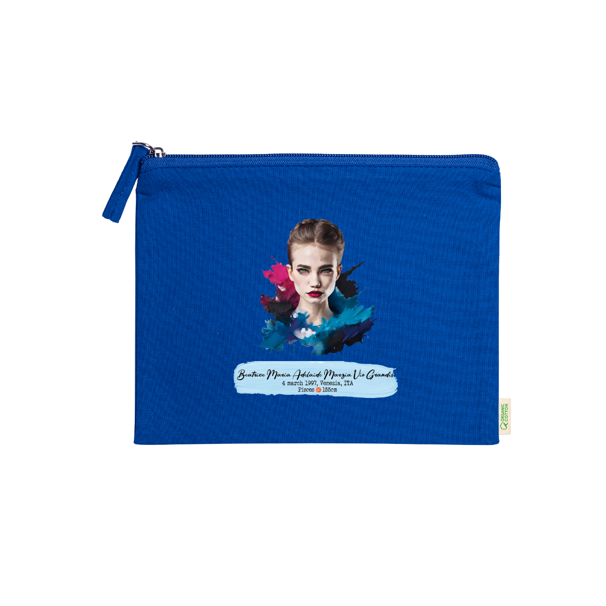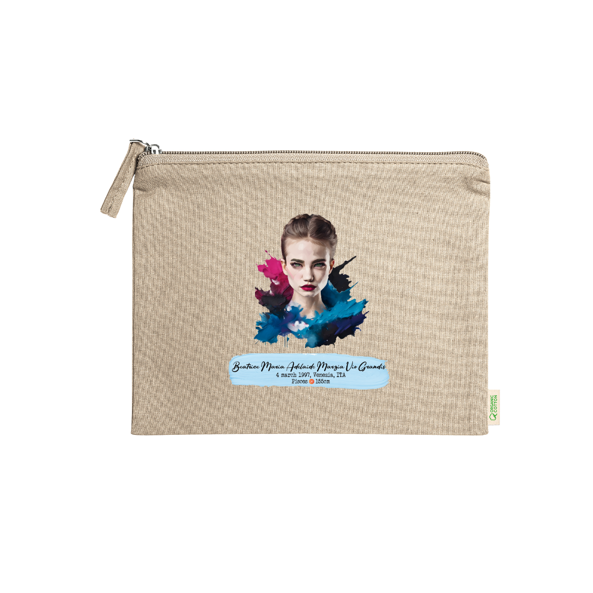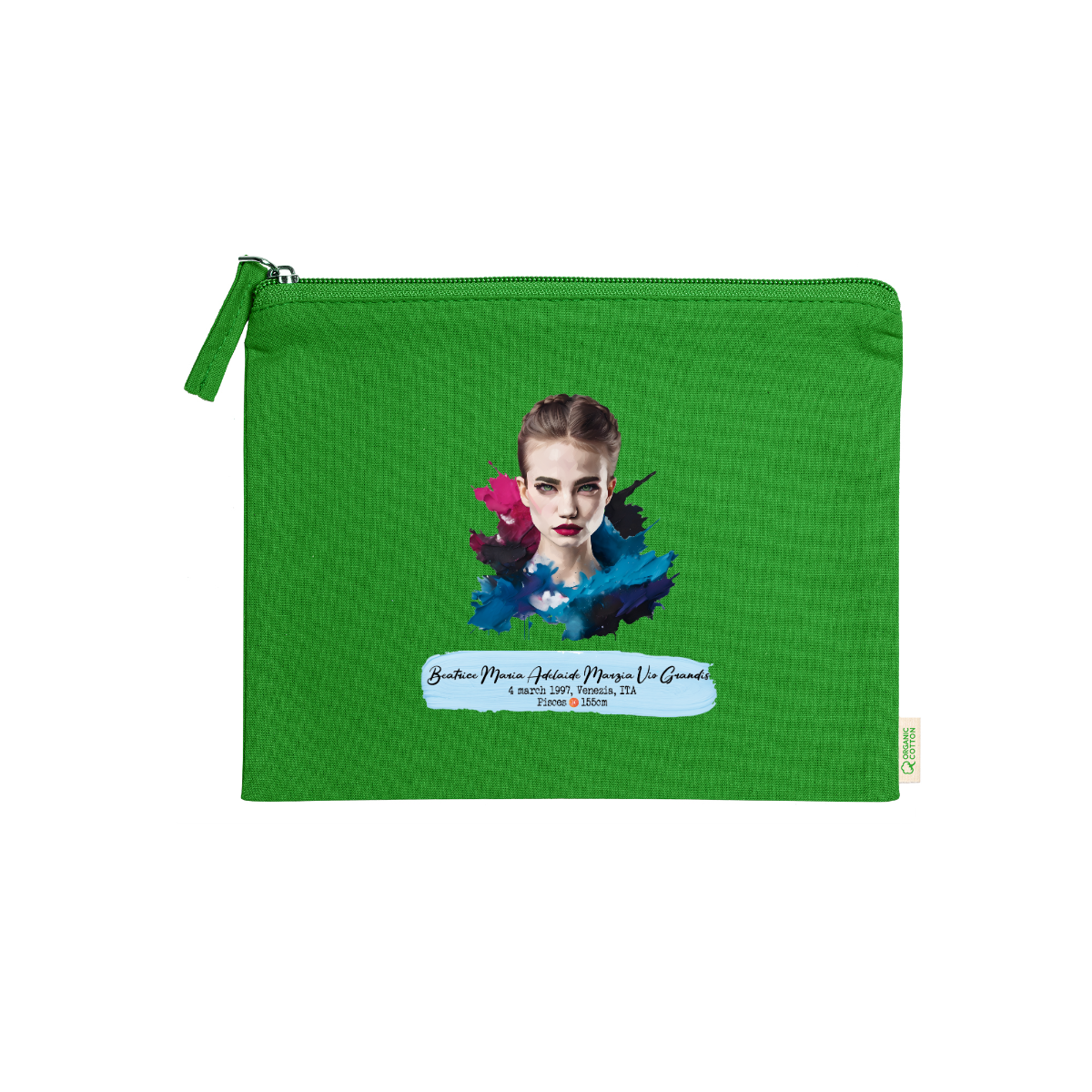 Beauty case, 100% cotone biologico,  180 g/m², tiretto abbinato, cerniera, misure 21cm x 16cm, 5 colori