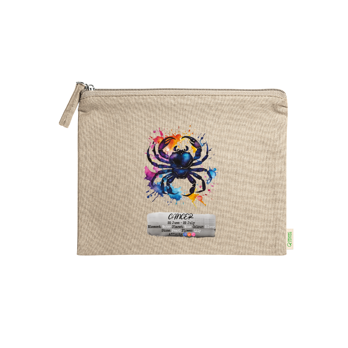 Toiletry bag, 100% organic cotton, 180 gsm, matching zipper pull, 21cm x 16cm, 5 colors