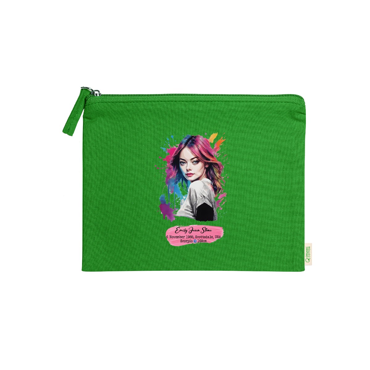 Beauty case, 100% cotone biologico,  180 g/m², tiretto abbinato, cerniera, misure 21cm x 16cm, 5 colori