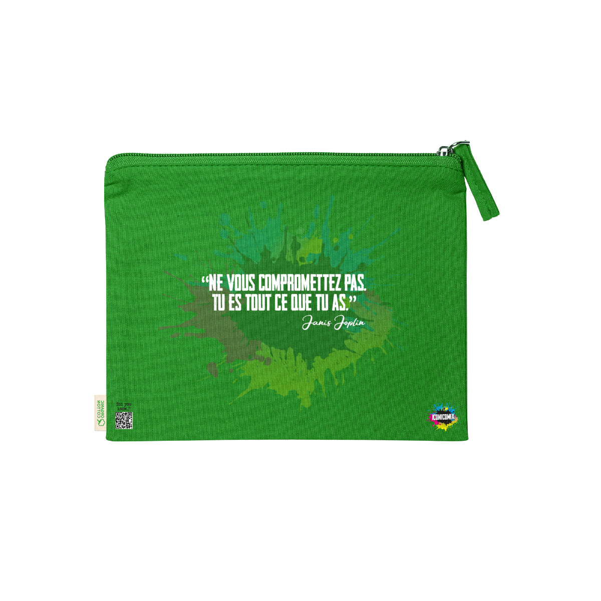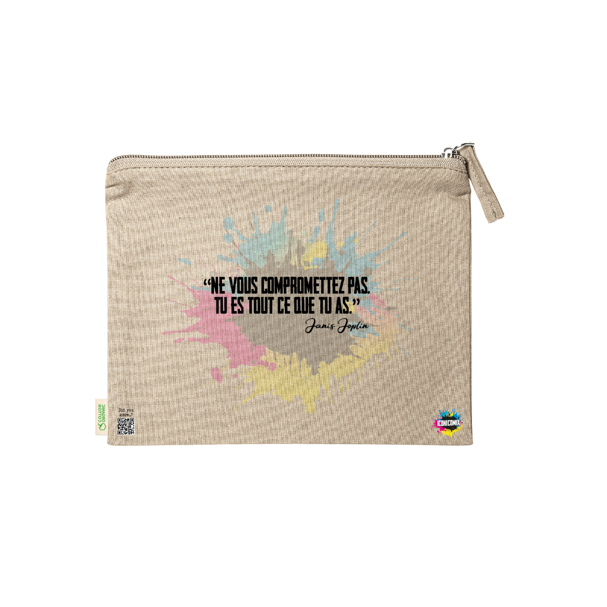 In ogni nostra grafica è presente anche un QR code che reindirizza al sito iconicomix.com, alla pagina ufficiale dell’icona che hai scelto. Una porta digitale che racconta la sua storia, le sue frasi e il suo mondo.