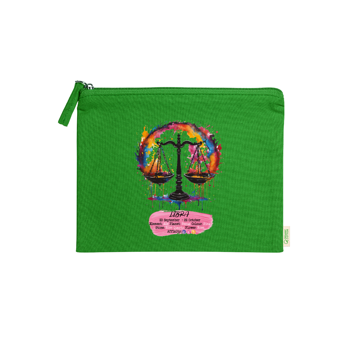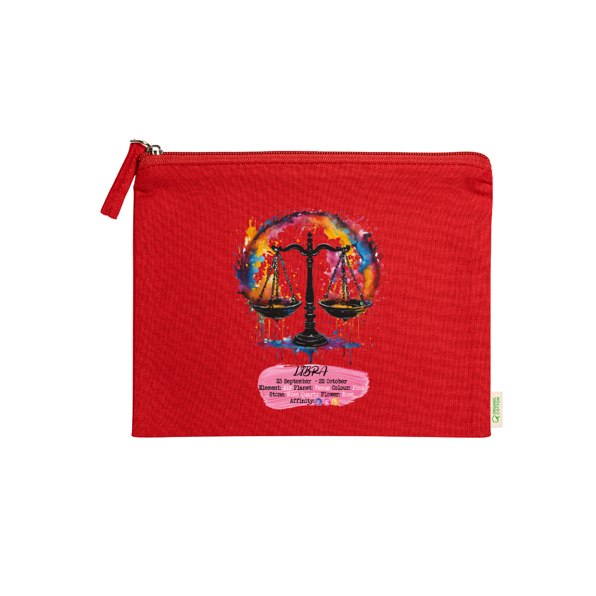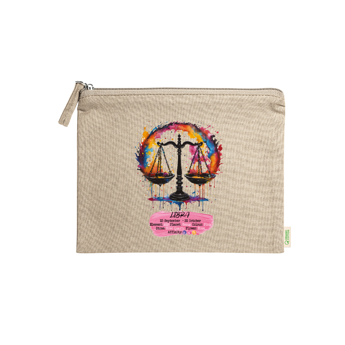 Beauty case, 100% cotone biologico,  180 g/m², tiretto abbinato, cerniera, misure 21cm x 16cm, 5 colori