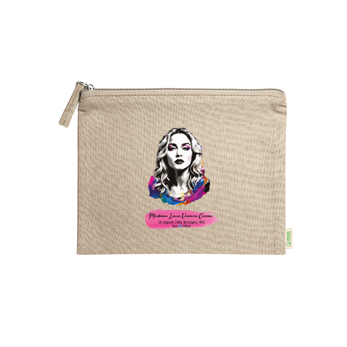 Beauty case, 100% cotone biologico,  180 g/m², tiretto abbinato, cerniera, misure 21cm x 16cm, 5 colori