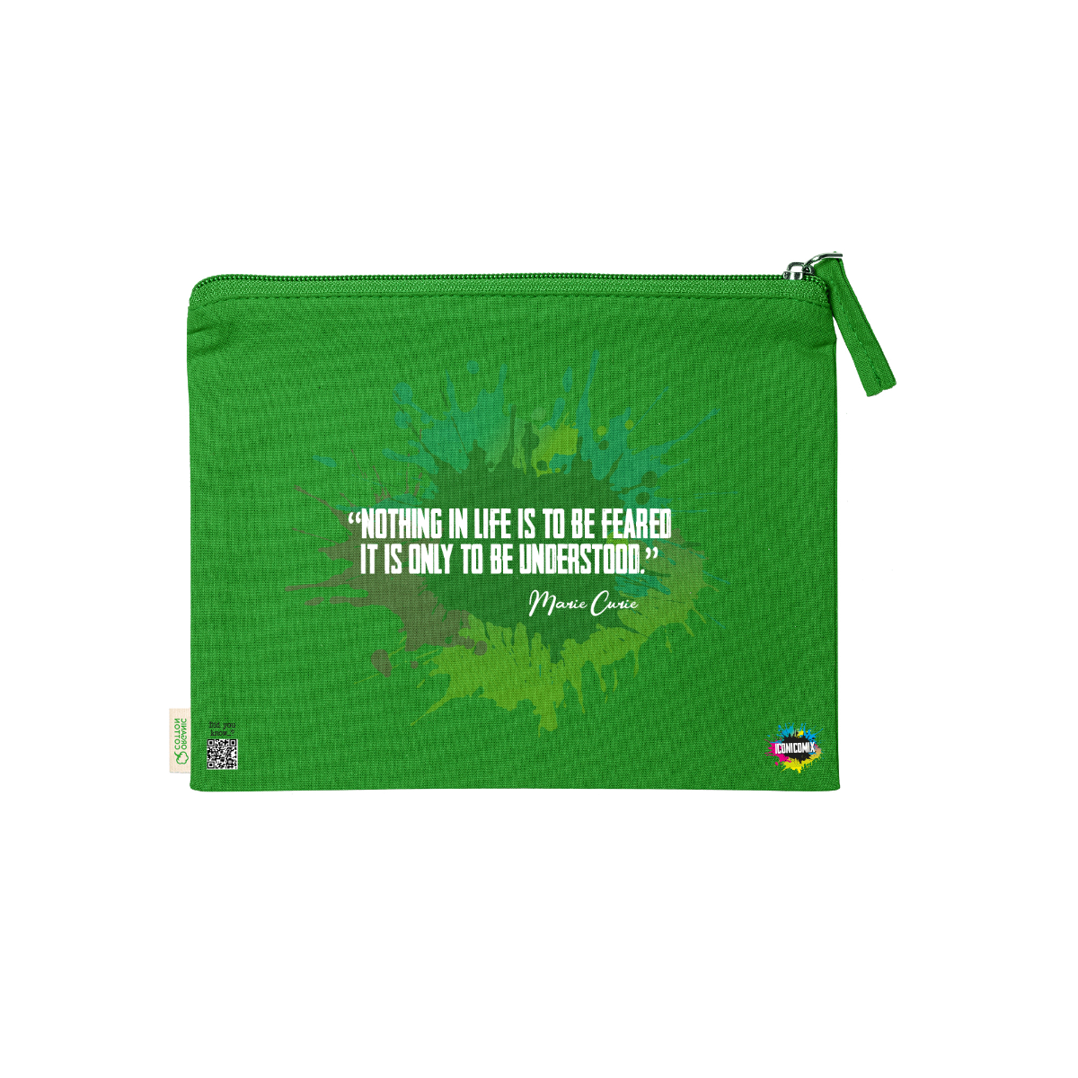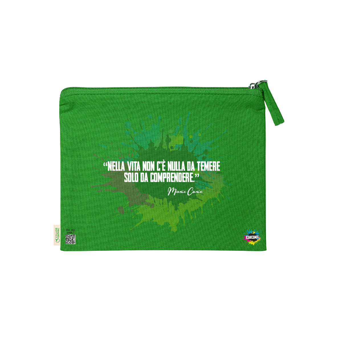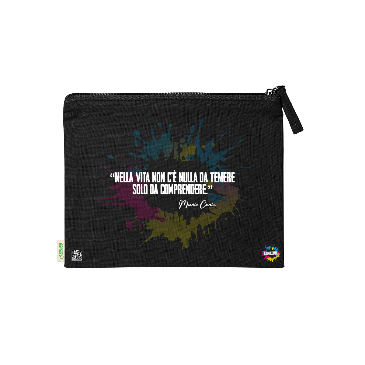 In ogni nostra grafica è presente anche un QR code che reindirizza al sito iconicomix.com, alla pagina ufficiale dell’icona che hai scelto. Una porta digitale che racconta la sua storia, le sue frasi e il suo mondo.