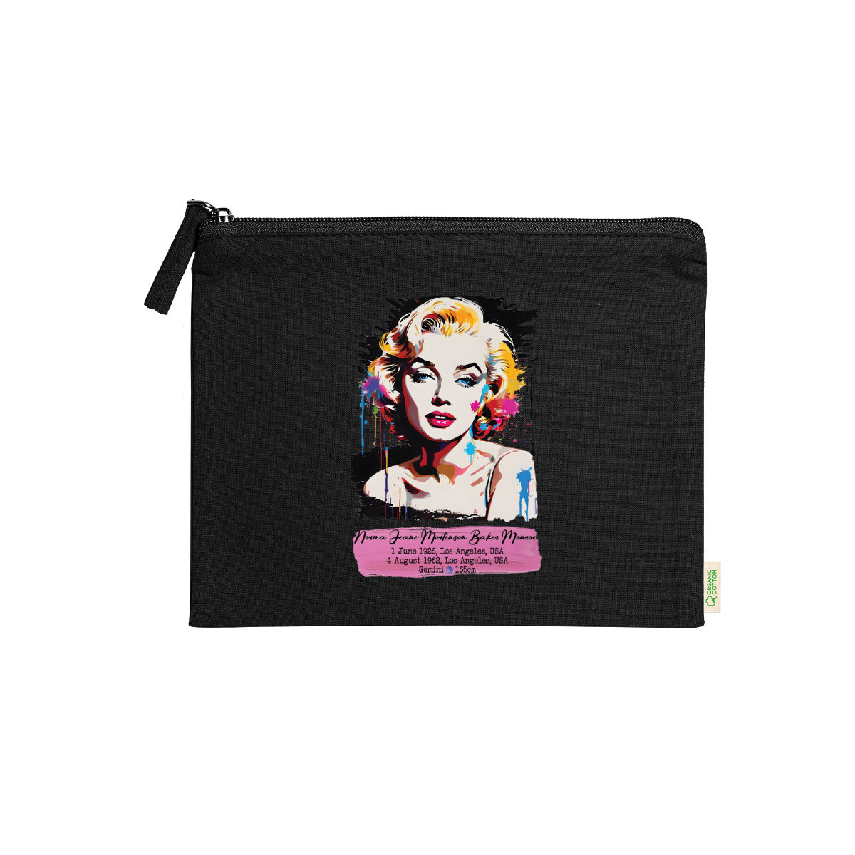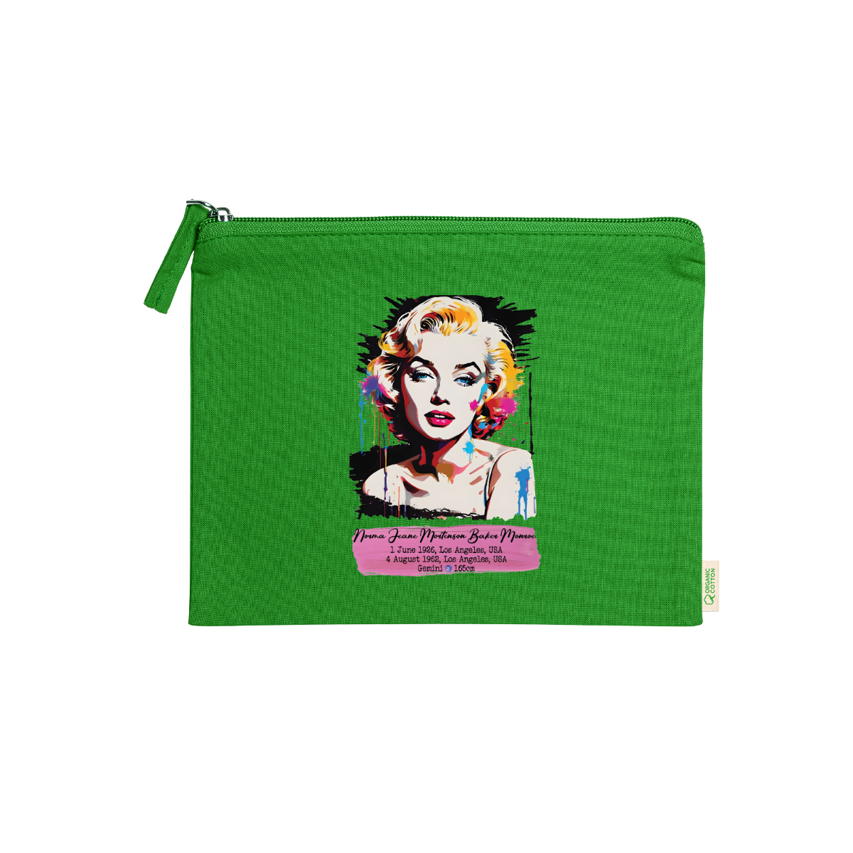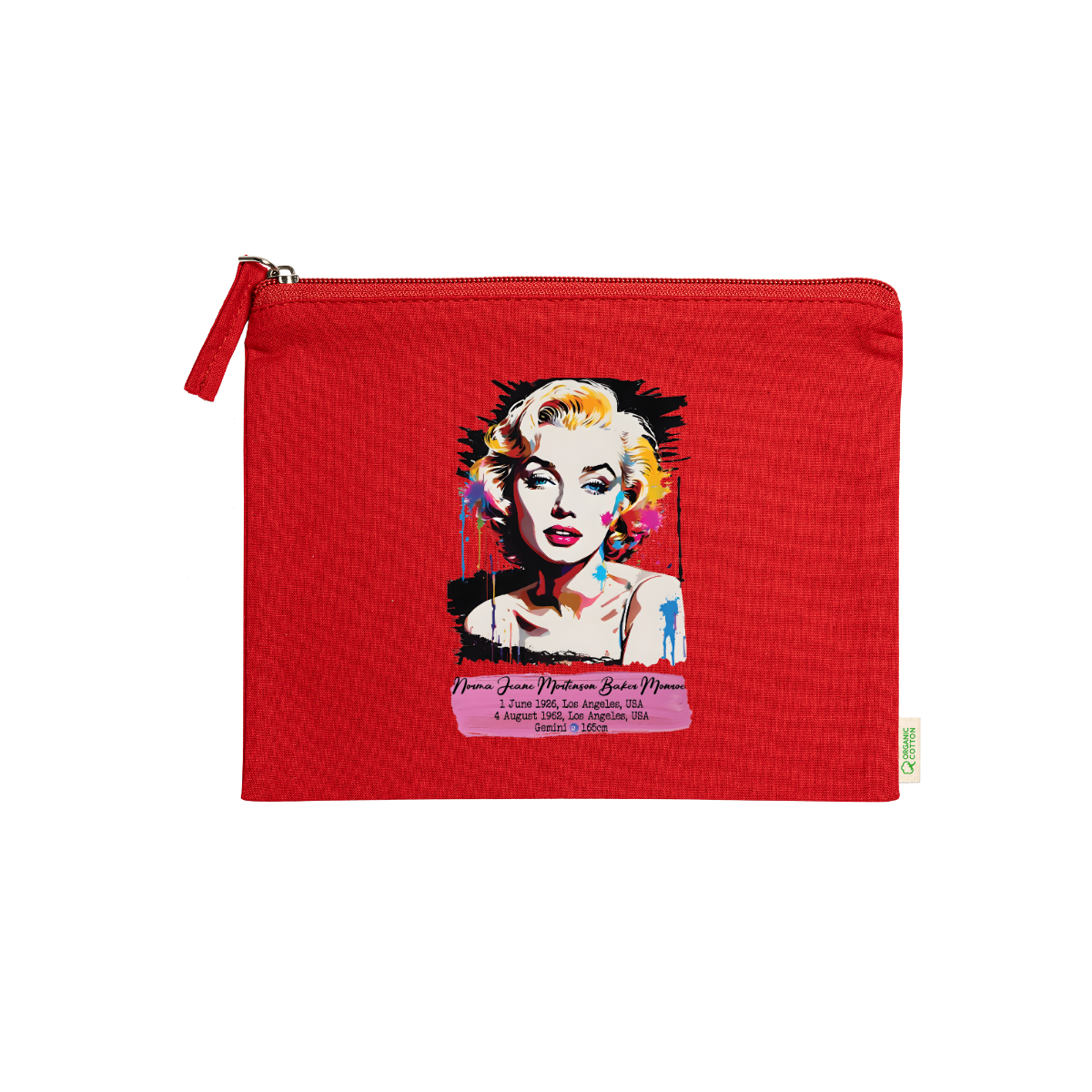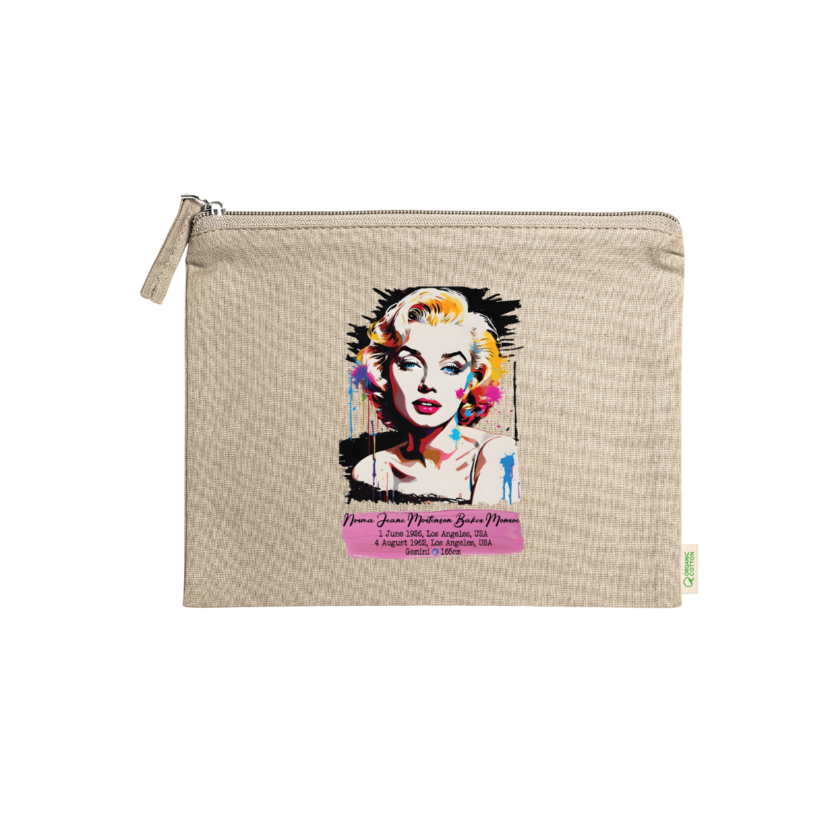 Beauty case, 100% cotone biologico,  180 g/m², tiretto abbinato, cerniera, misure 21cm x 16cm, 5 colori