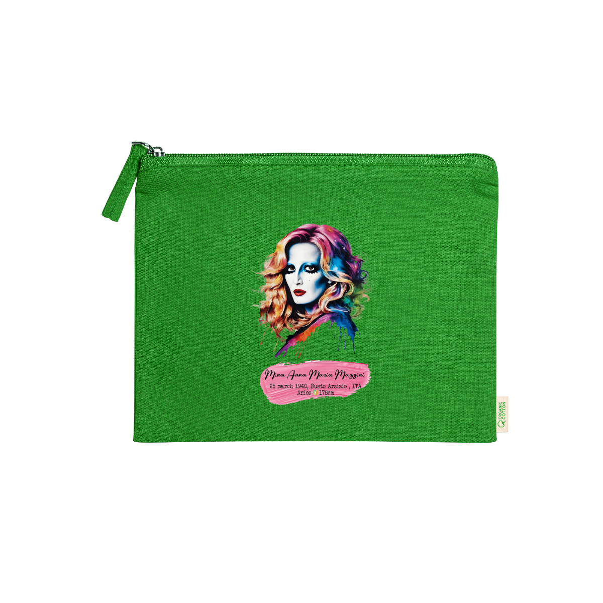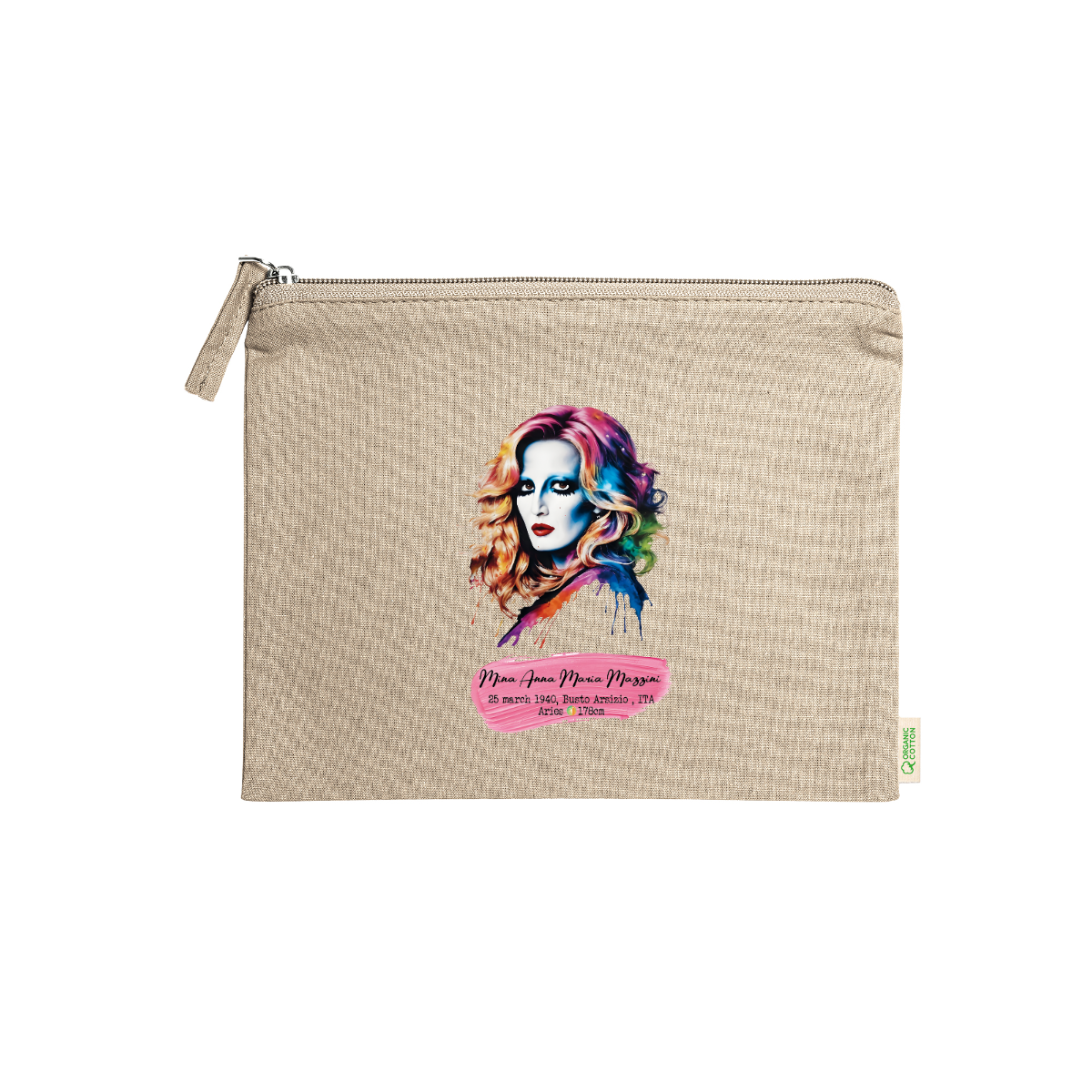 Beauty case, 100% cotone biologico,  180 g/m², tiretto abbinato, cerniera, misure 21cm x 16cm, 5 colori
