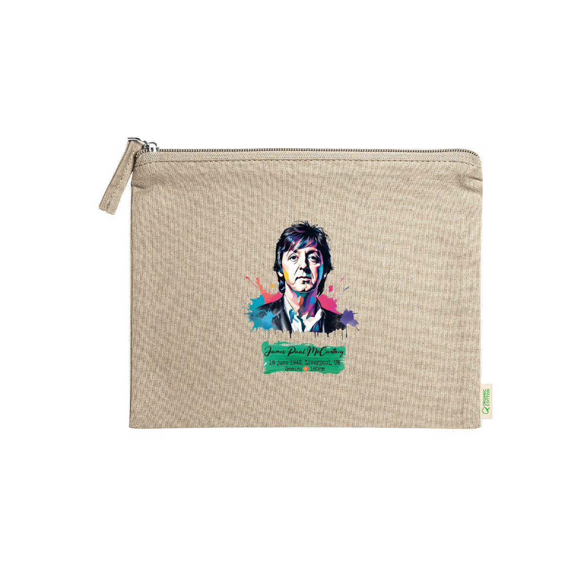 Beauty case, 100% cotone biologico,  180 g/m², tiretto abbinato, cerniera, misure 21cm x 16cm, 5 colori