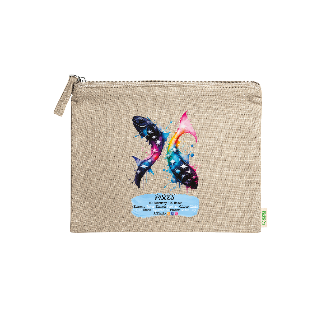 Beauty case, 100% cotone biologico,  180 g/m², tiretto abbinato, cerniera, misure 21cm x 16cm, 5 colori