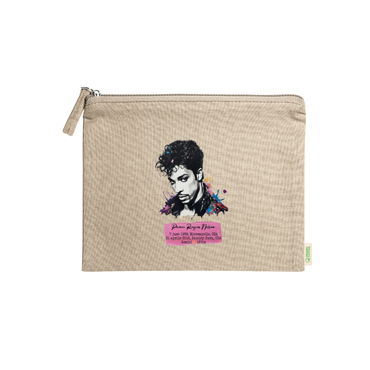 Beauty case, 100% cotone biologico,  180 g/m², tiretto abbinato, cerniera, misure 21cm x 16cm, 5 colori