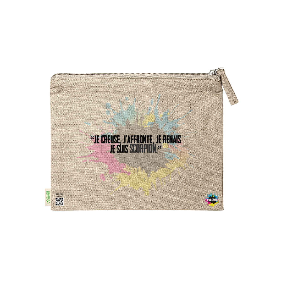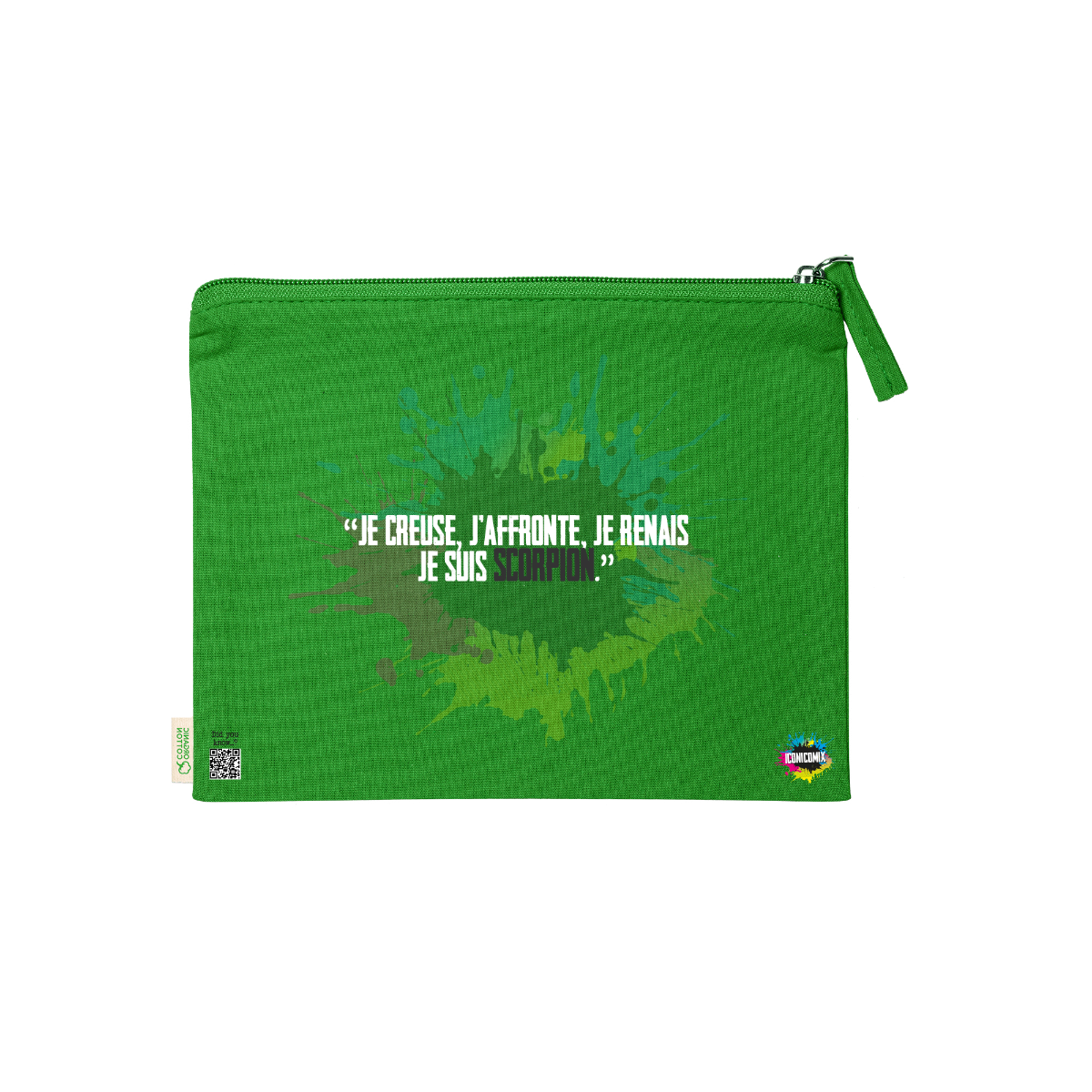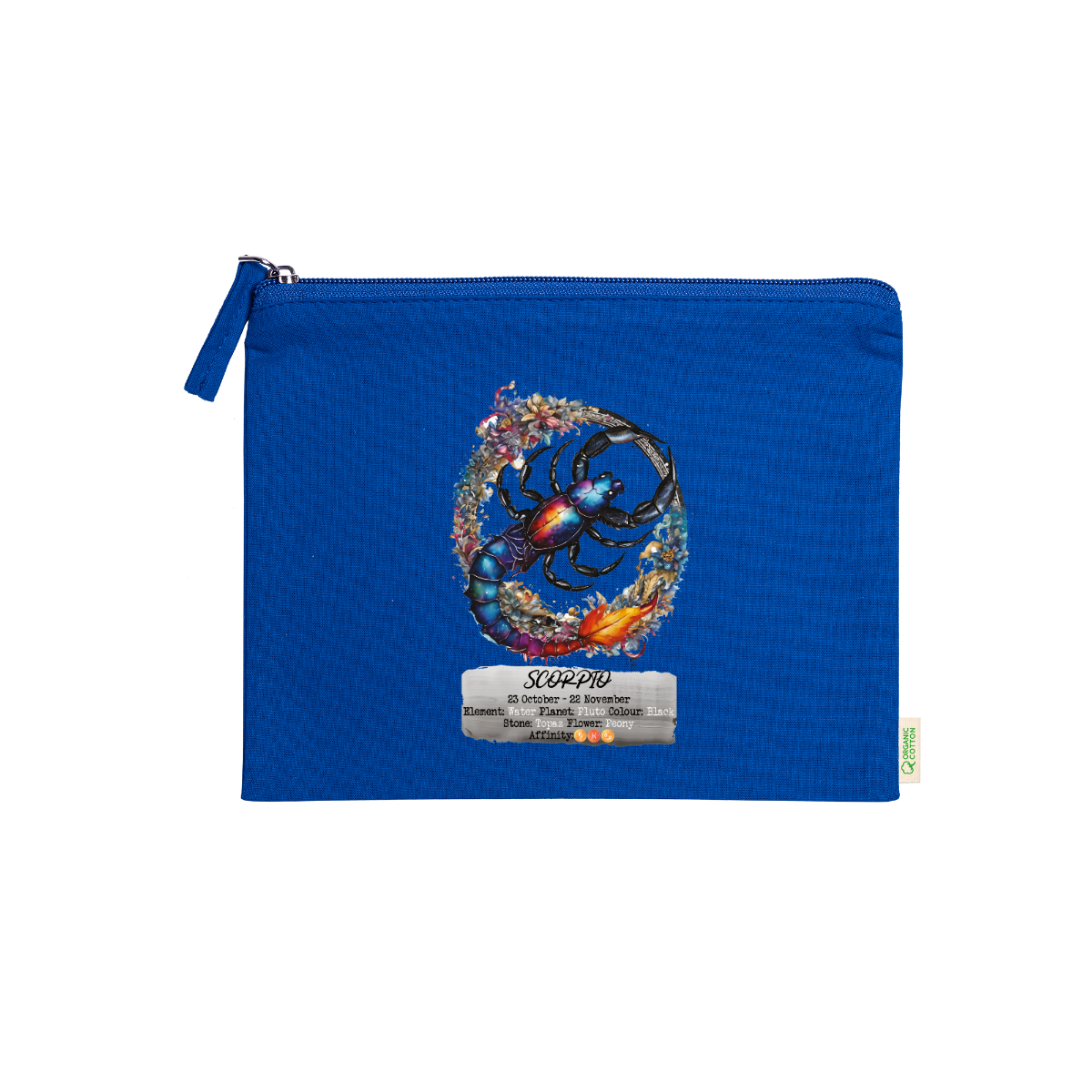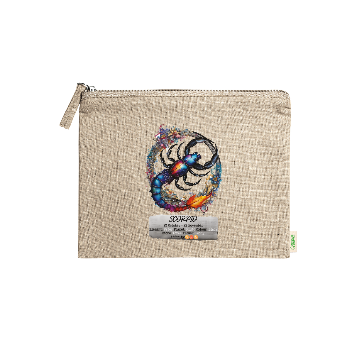 Beauty case, 100% cotone biologico,  180 g/m², tiretto abbinato, cerniera, misure 21cm x 16cm, 5 colori