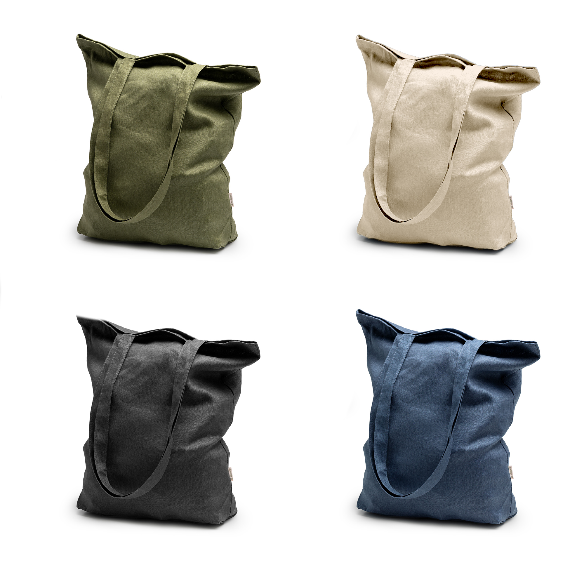 Borsa 100% cotone biologico, 270 g/m², colorato con tasselli sulla base. Tracolla da 70 cm. Misure - 38 cm / 42 cm / 9 cm