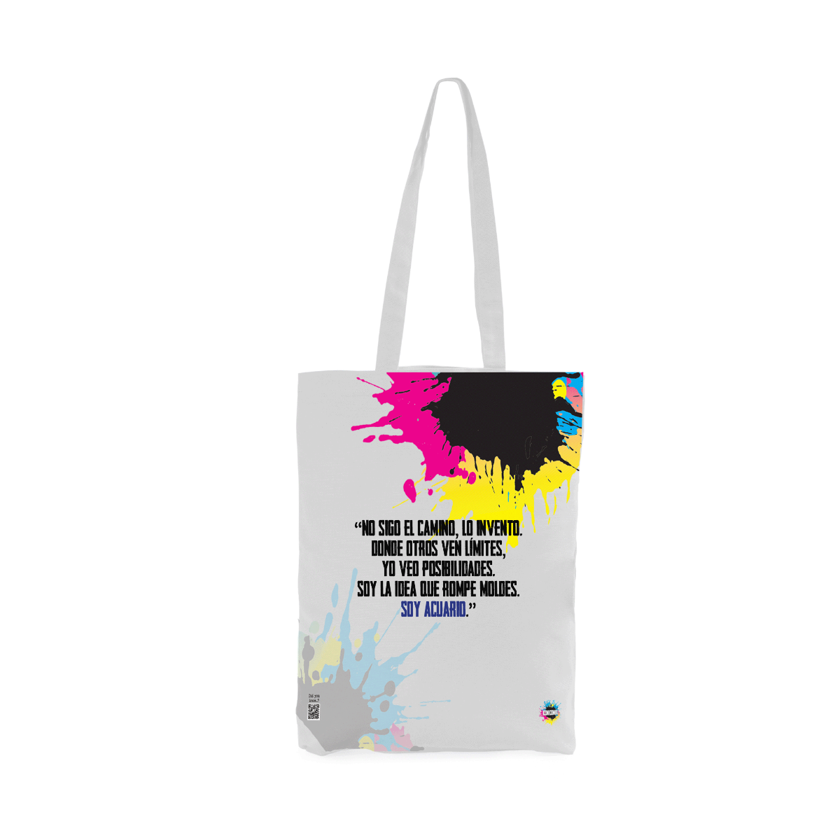 Borsa 100% cotone biologico, 270 g/m², colorato con tasselli sulla base. Tracolla da 70 cm. Misure - 38 cm / 42 cm / 9 cm