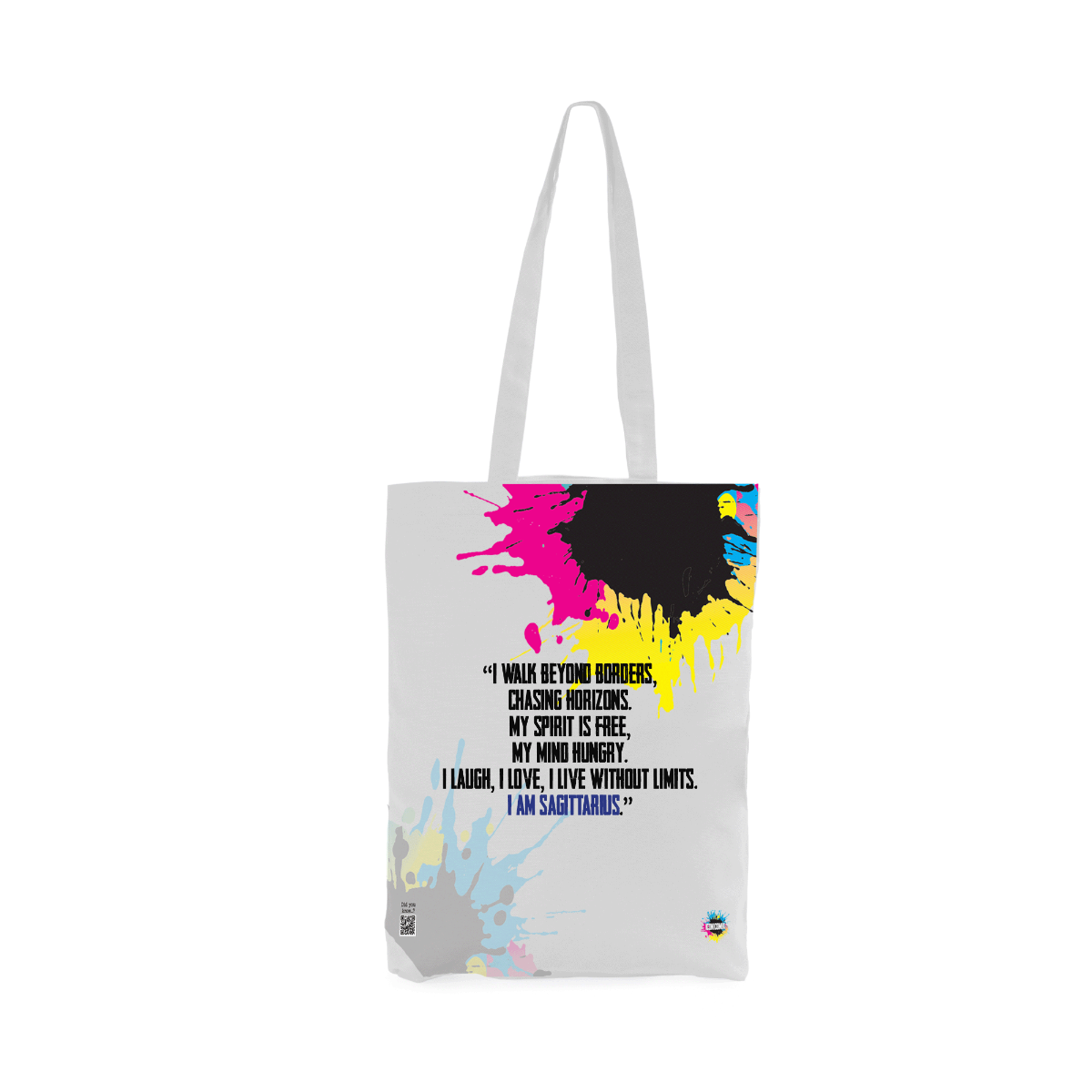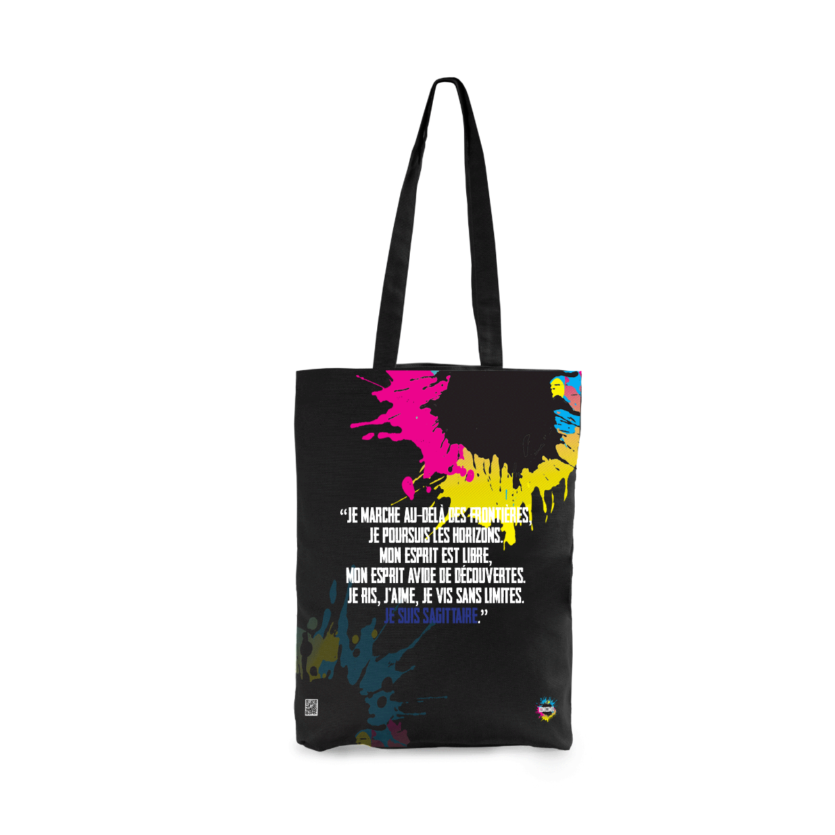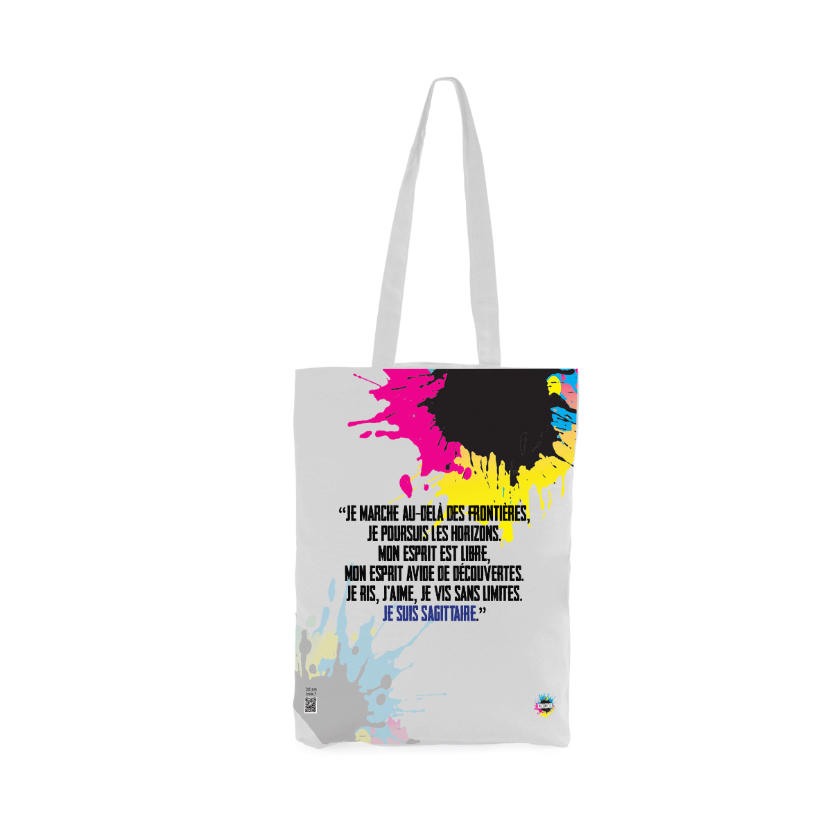 Borsa 100% cotone biologico, 270 g/m², colorato con tasselli sulla base. Tracolla da 70 cm. Misure - 38 cm / 42 cm / 9 cm