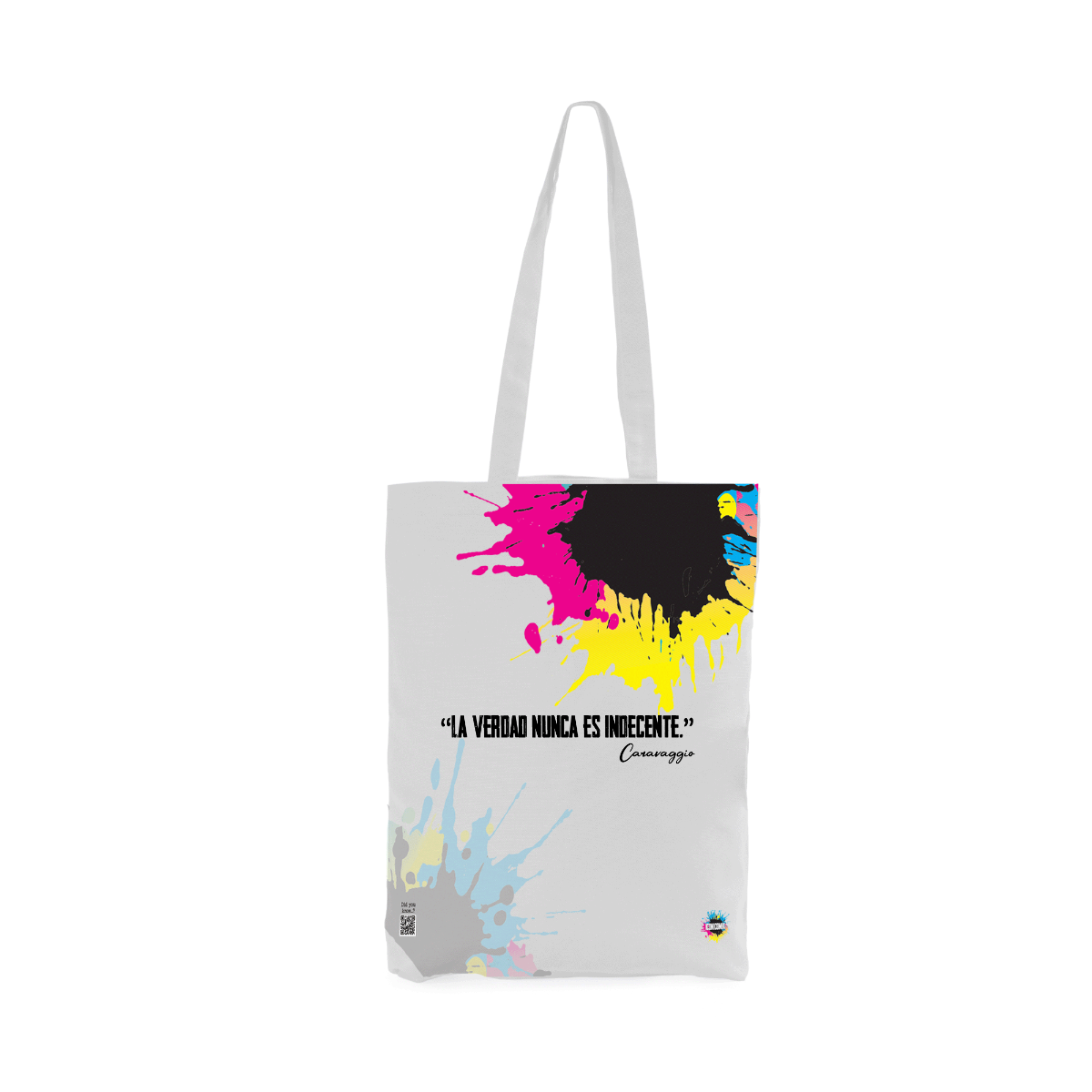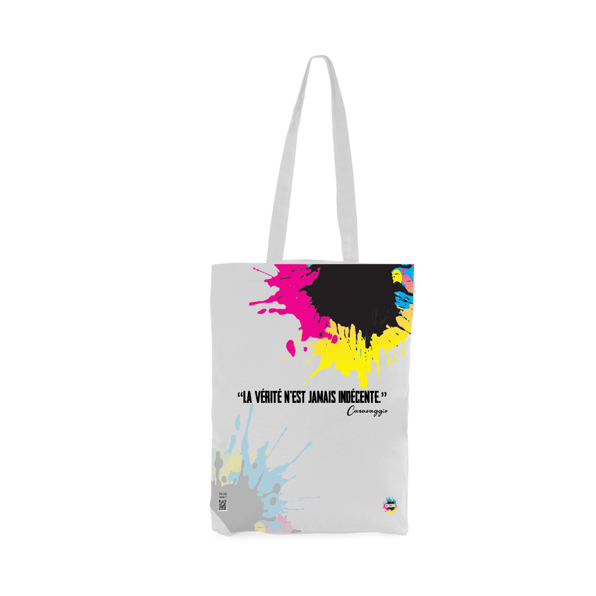 Borsa 100% cotone biologico, 270 g/m², colorato con tasselli sulla base. Tracolla da 70 cm. Misure - 38 cm / 42 cm / 9 cm