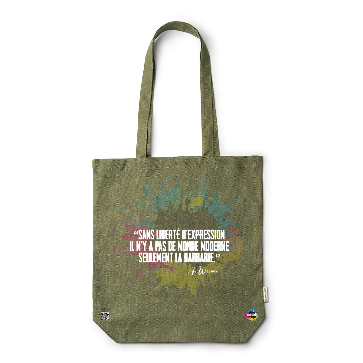 Borsa con linguetta in tessuto 100% canapa (200 g/m²). Manici rinforzati lunghi 70 cm. Misure  38cm x 10cm x 42cm. Resistente e capiente. In 4 colori