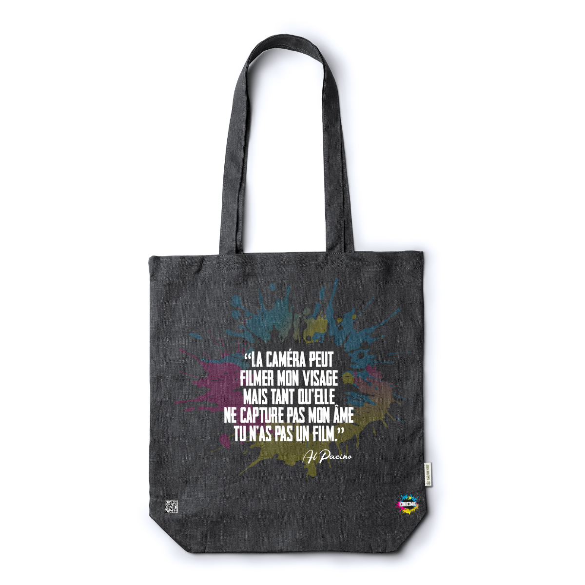 Cada uno de nuestros diseños incluye un código QR que te redirige a iconicomix.com, la página oficial del icono que has elegido. Un portal digital que narra su historia, sus frases y su universo.