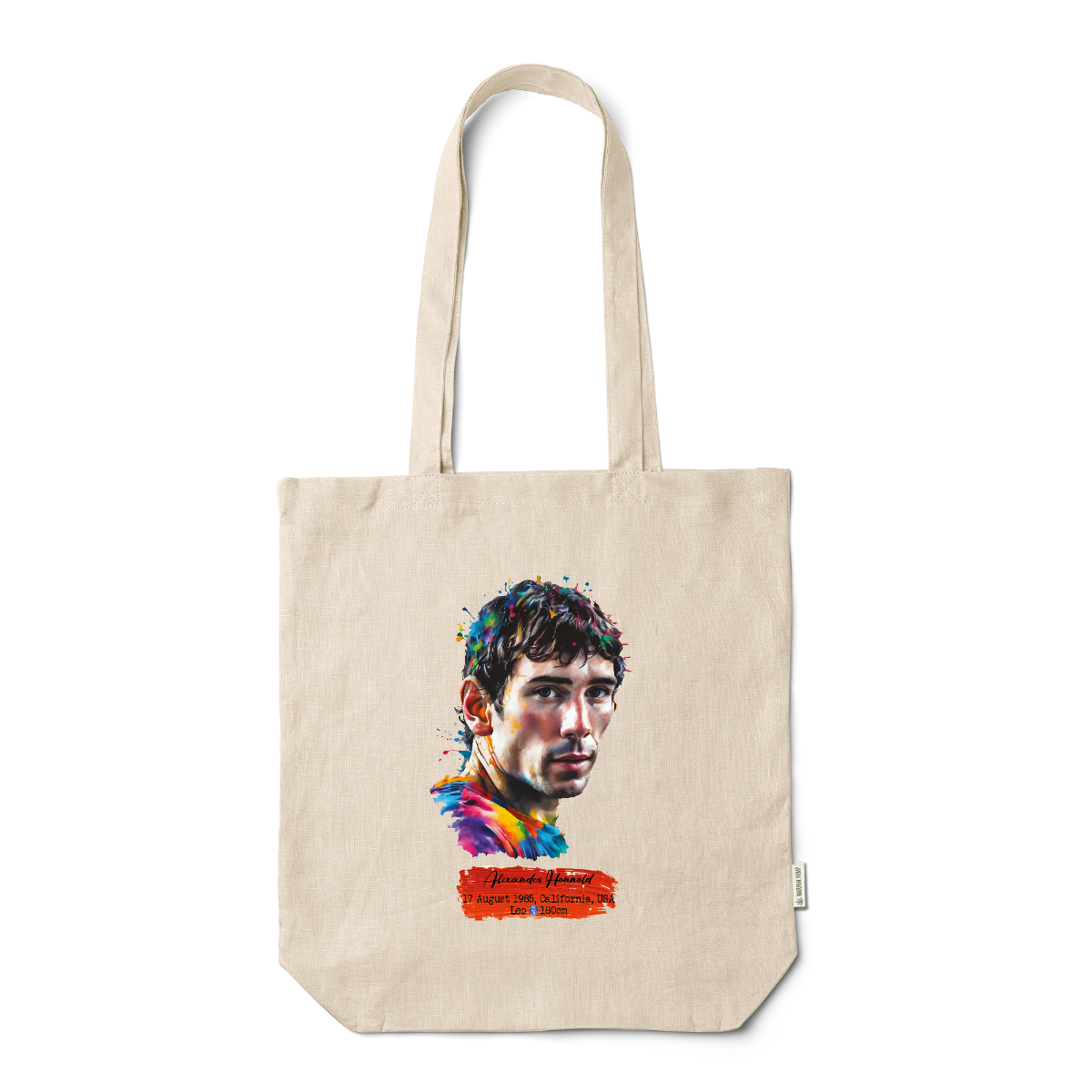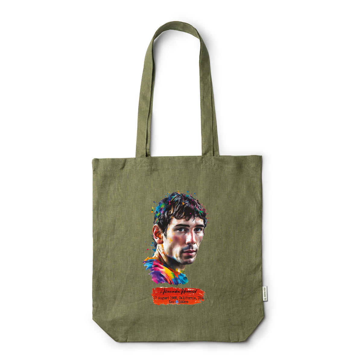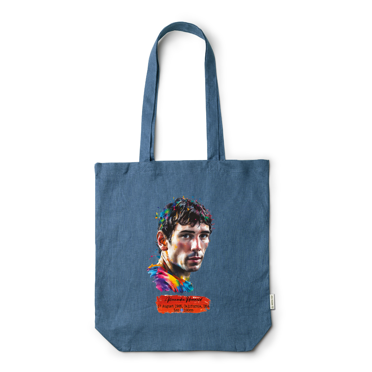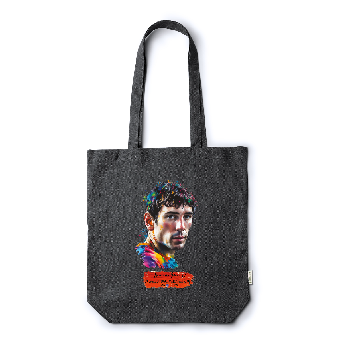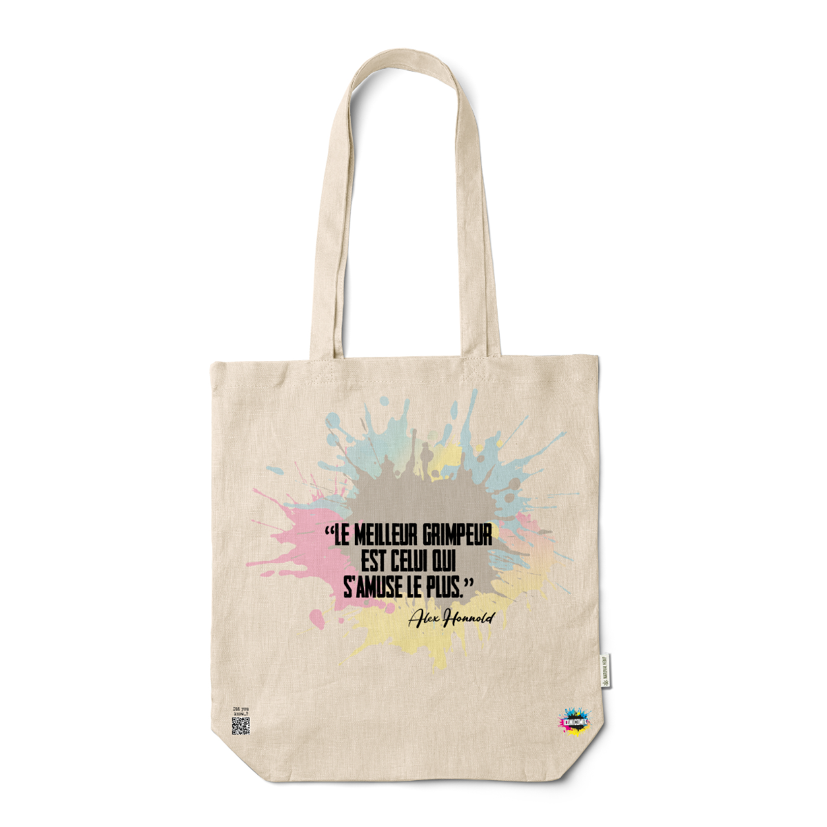 Borsa con linguetta in tessuto 100% canapa (200 g/m²). Manici rinforzati lunghi 70 cm. Misure  38cm x 10cm x 42cm. Resistente e capiente. In 4 colori