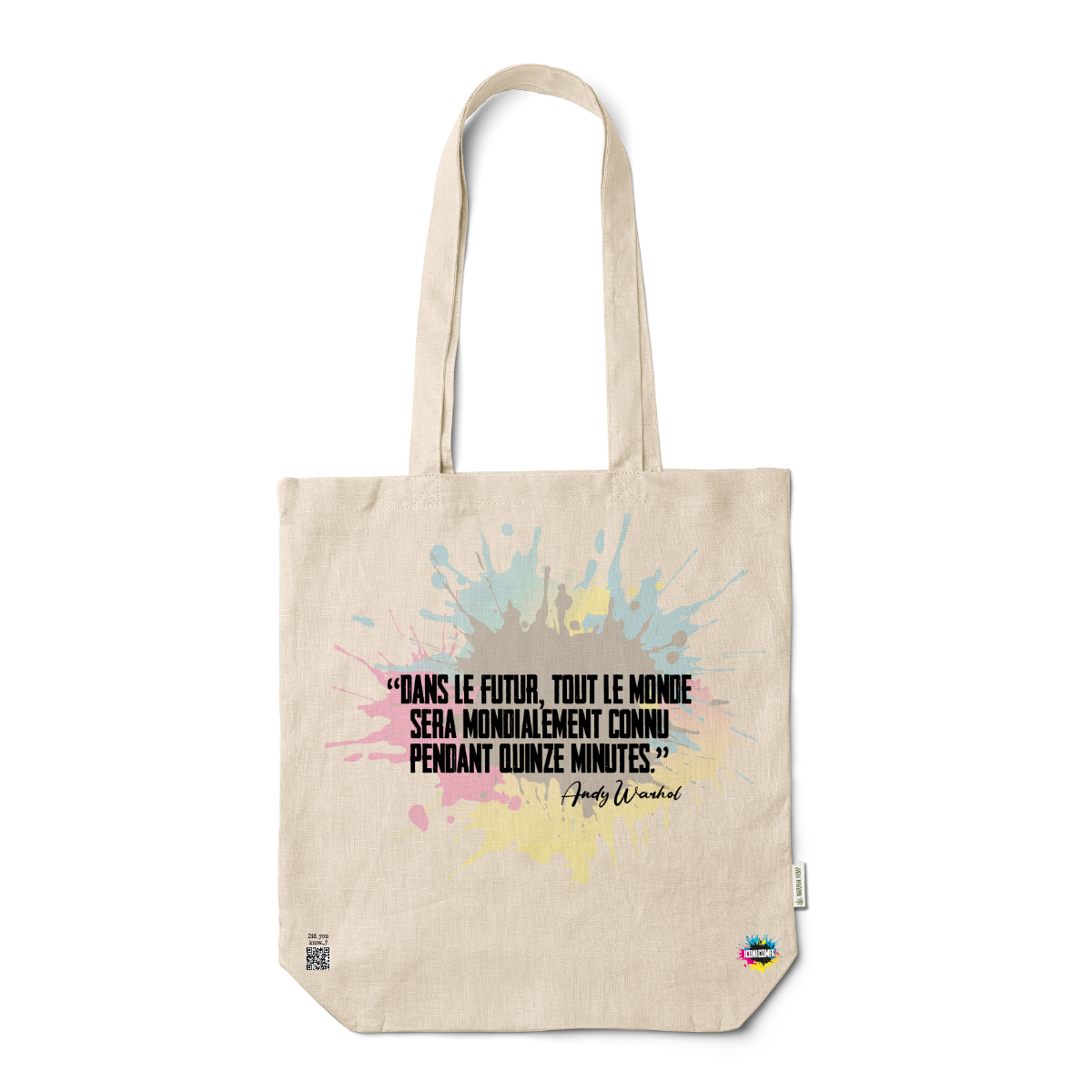 Borsa con linguetta in tessuto 100% canapa (200 g/m²). Manici rinforzati lunghi 70 cm. Misure  38cm x 10cm x 42cm. Resistente e capiente. In 4 colori