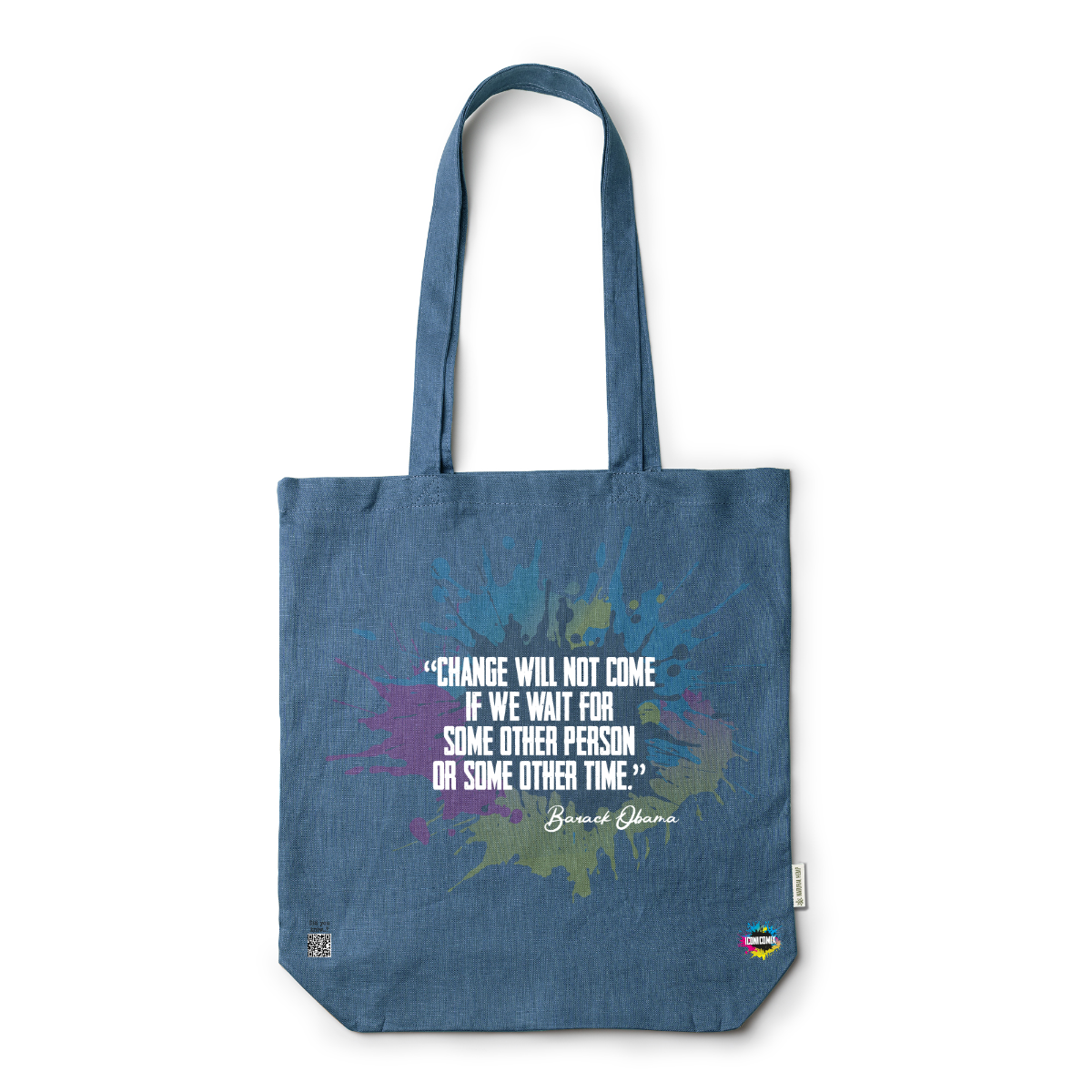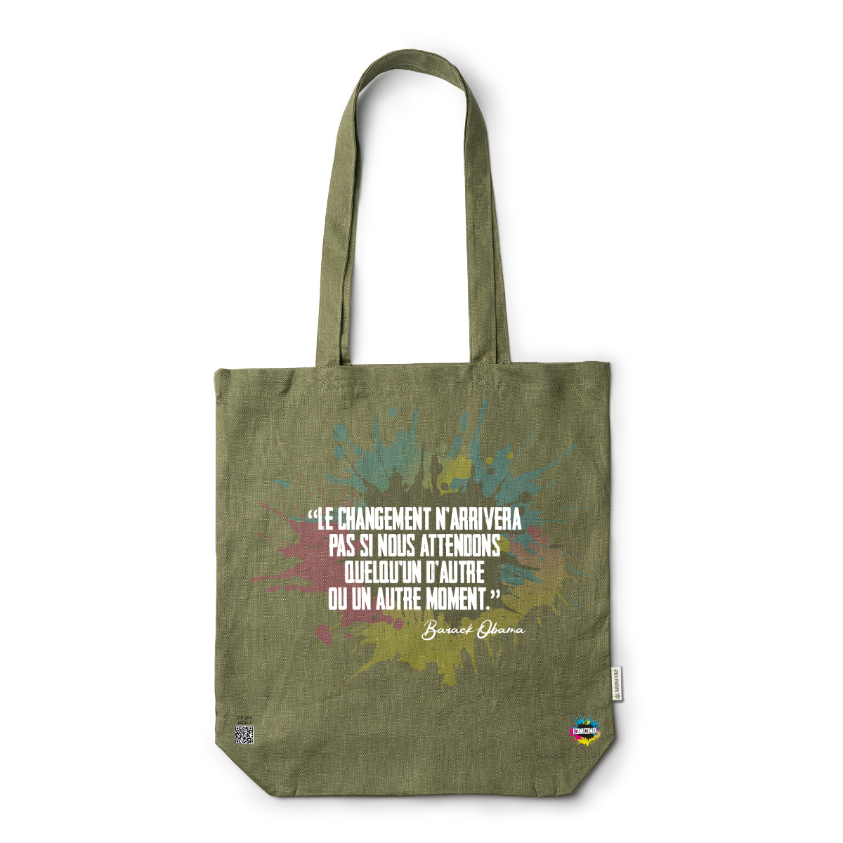 In ogni nostra grafica è presente anche un QR code che reindirizza al sito iconicomix.com, alla pagina ufficiale dell’icona che hai scelto. Una porta digitale che racconta la sua storia, le sue frasi e il suo mondo.