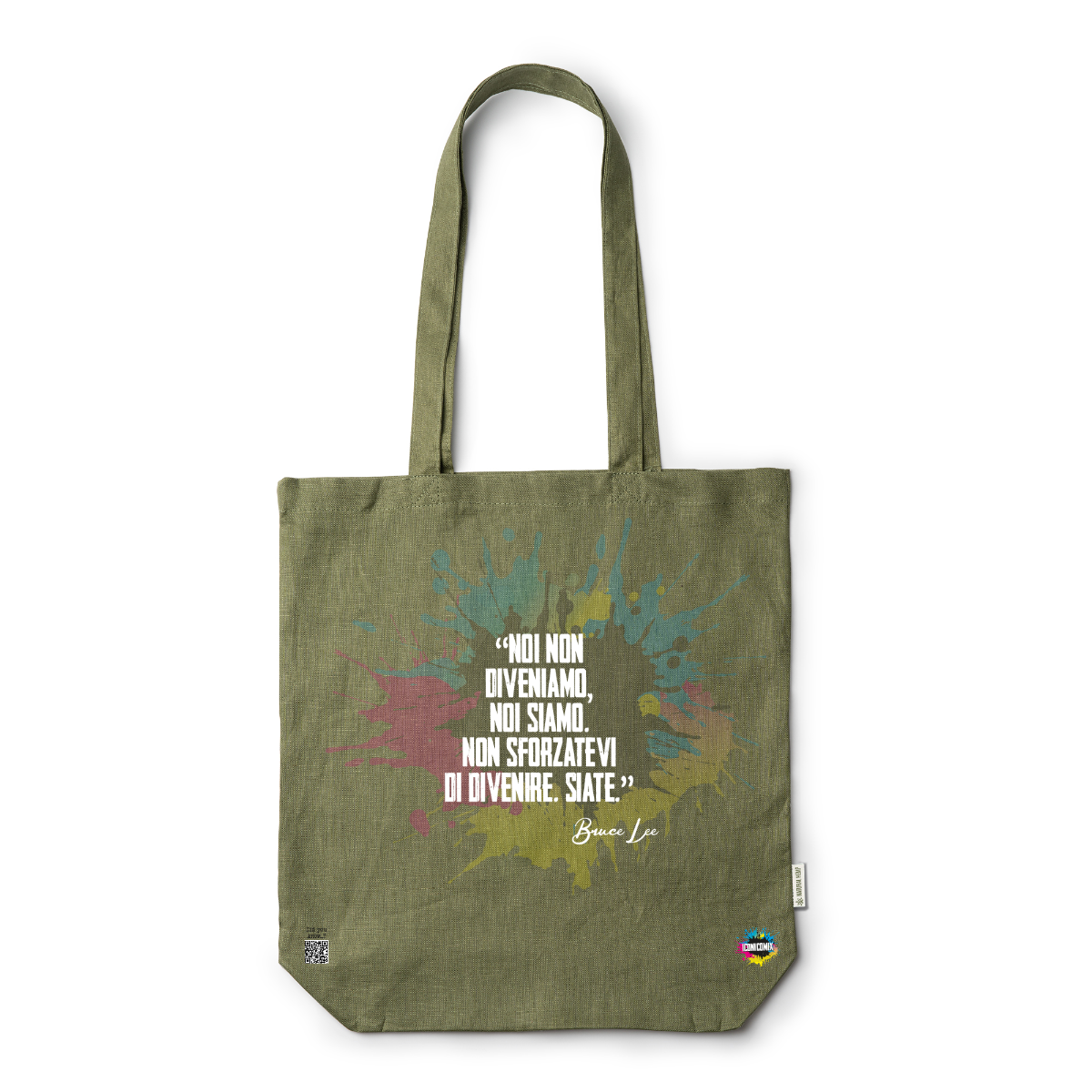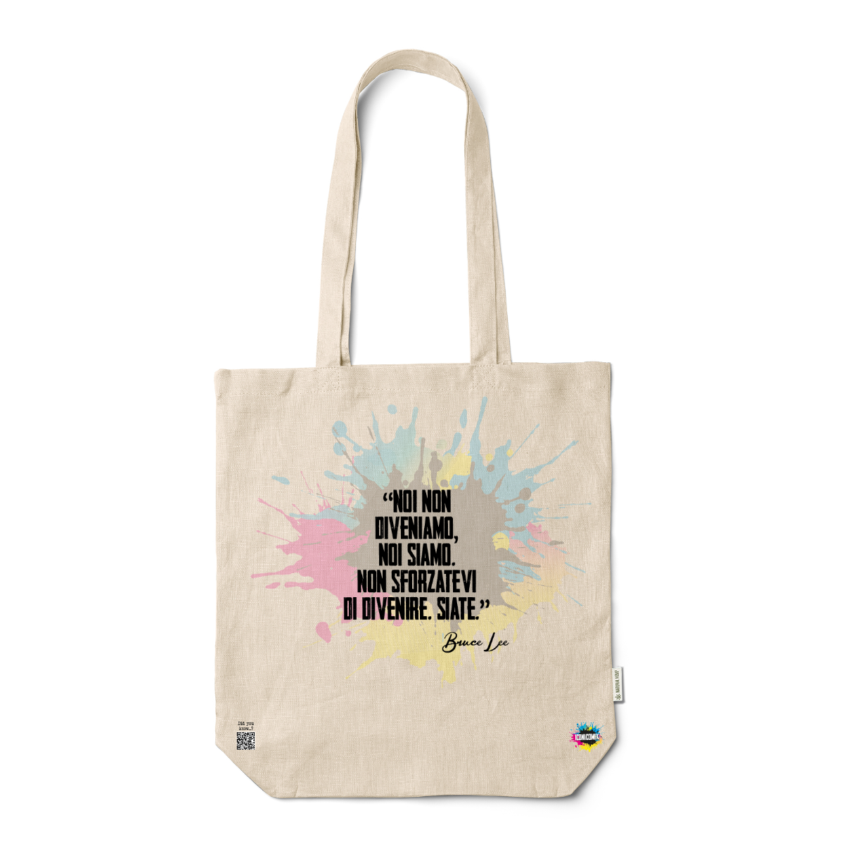 In ogni nostra grafica è presente anche un QR code che reindirizza al sito iconicomix.com, alla pagina ufficiale dell’icona che hai scelto. Una porta digitale che racconta la sua storia, le sue frasi e il suo mondo.
