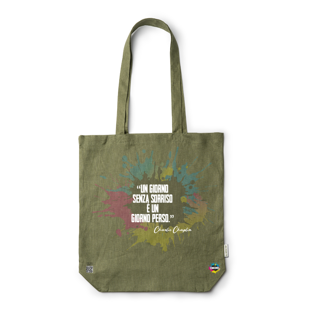 In ogni nostra grafica è presente anche un QR code che reindirizza al sito iconicomix.com, alla pagina ufficiale dell’icona che hai scelto. Una porta digitale che racconta la sua storia, le sue frasi e il suo mondo.