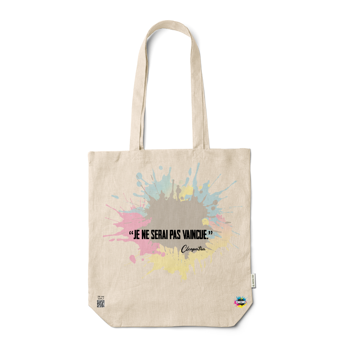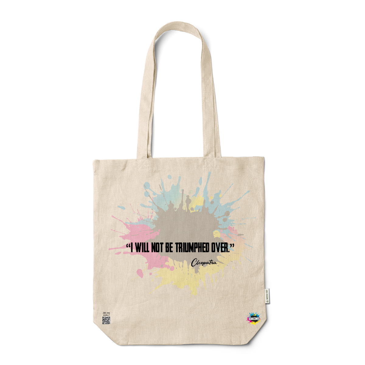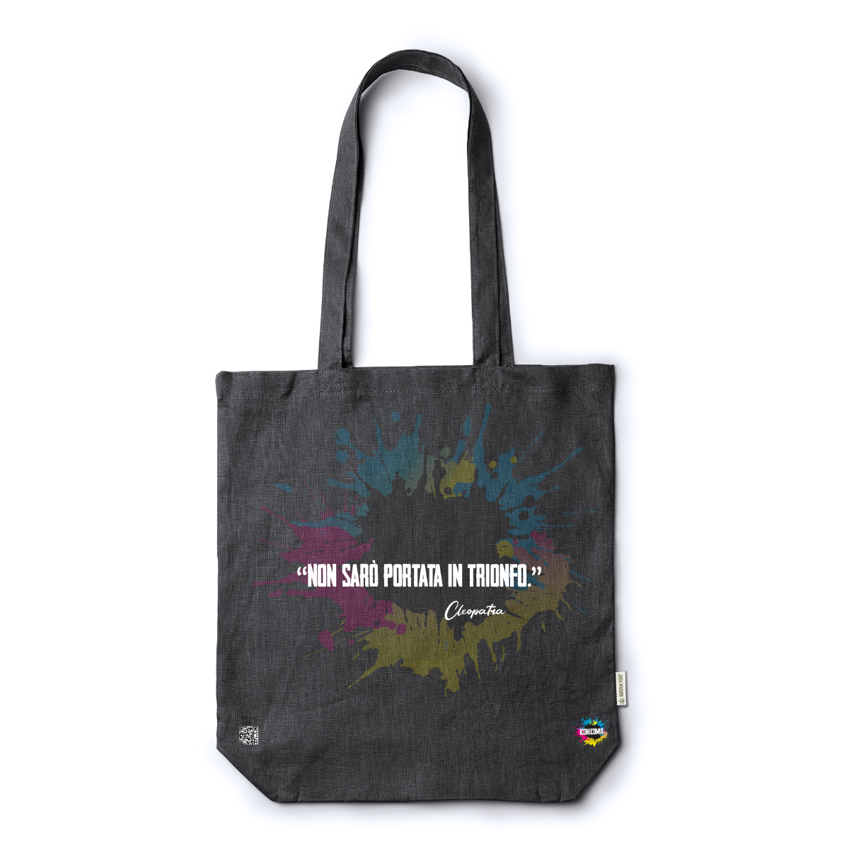 In ogni nostra grafica è presente anche un QR code che reindirizza al sito iconicomix.com, alla pagina ufficiale dell’icona che hai scelto. Una porta digitale che racconta la sua storia, le sue frasi e il suo mondo.