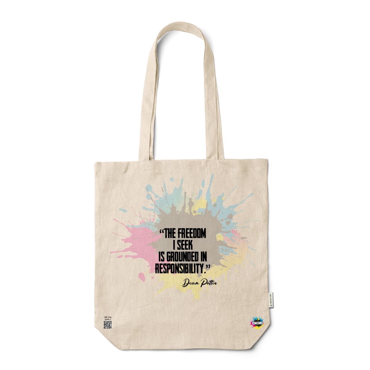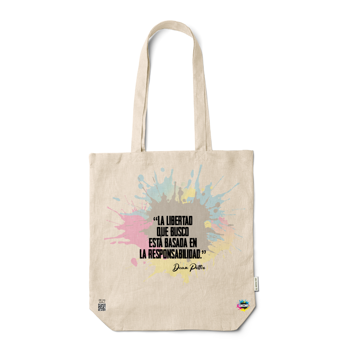 Borsa con linguetta in tessuto 100% canapa (200 g/m²). Manici rinforzati lunghi 70 cm. Misure  38cm x 10cm x 42cm. Resistente e capiente. In 4 colori