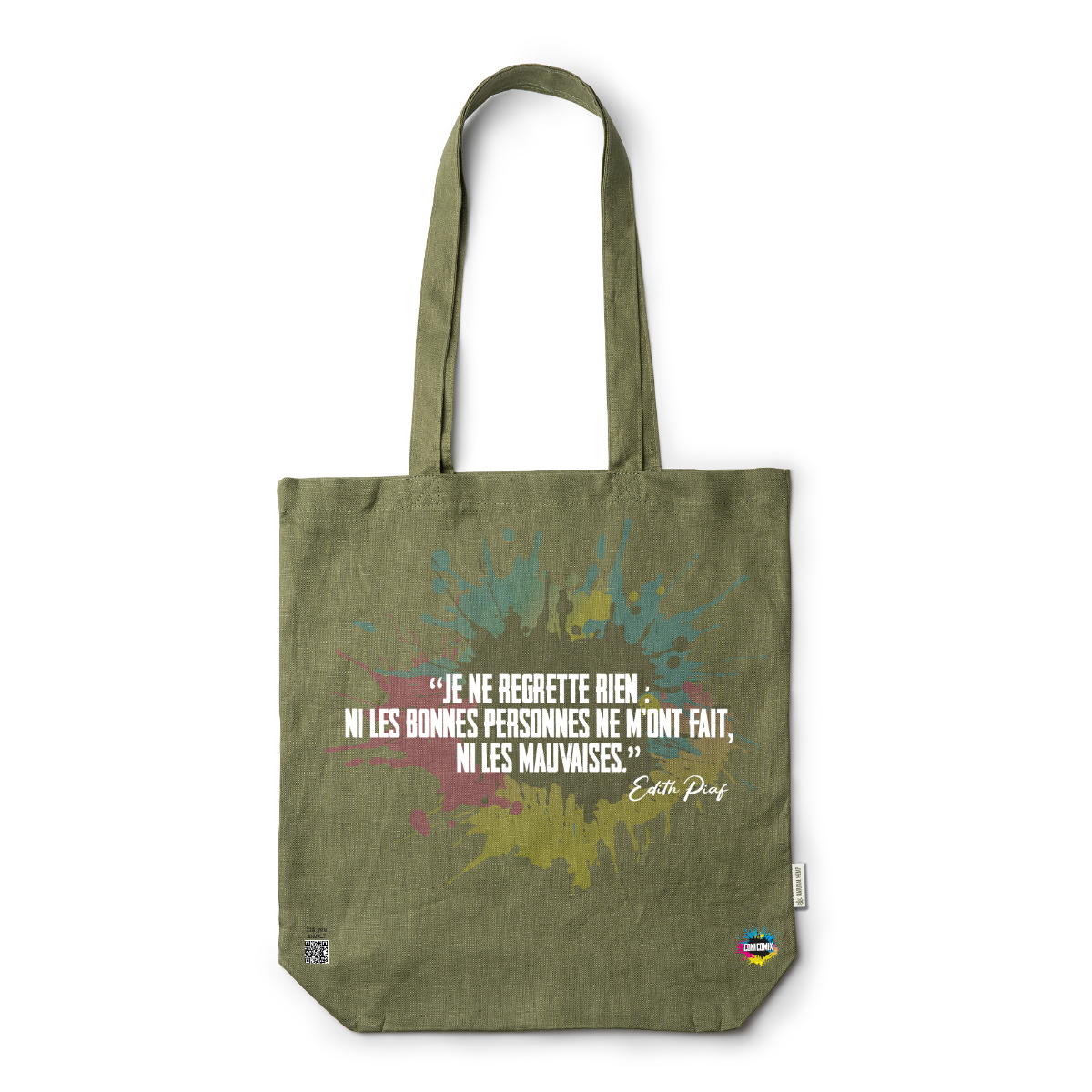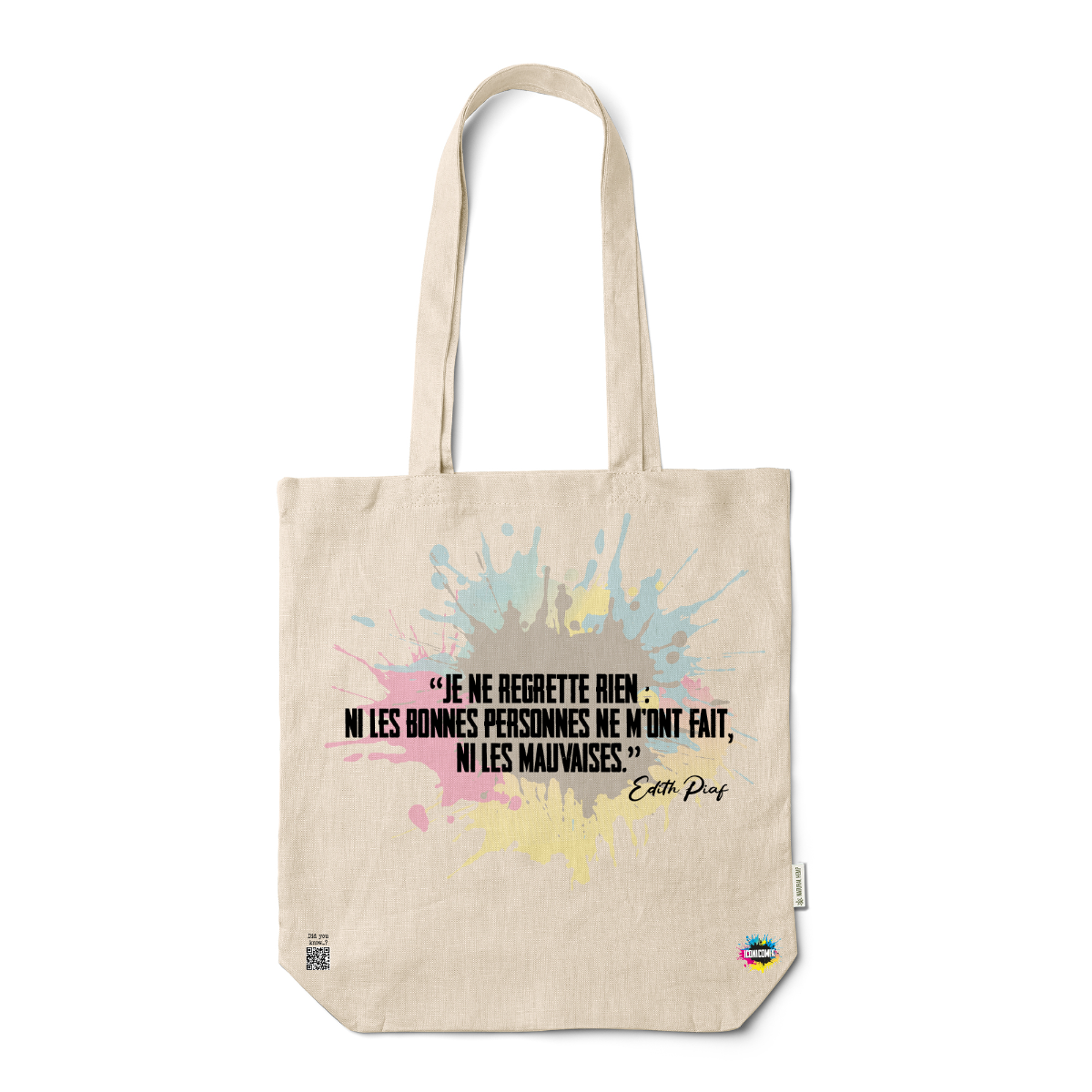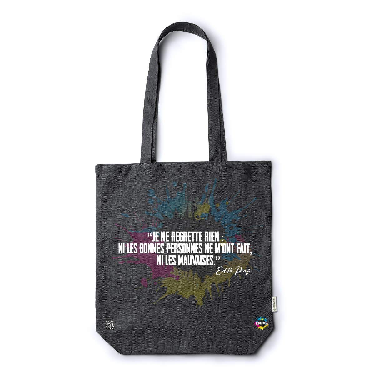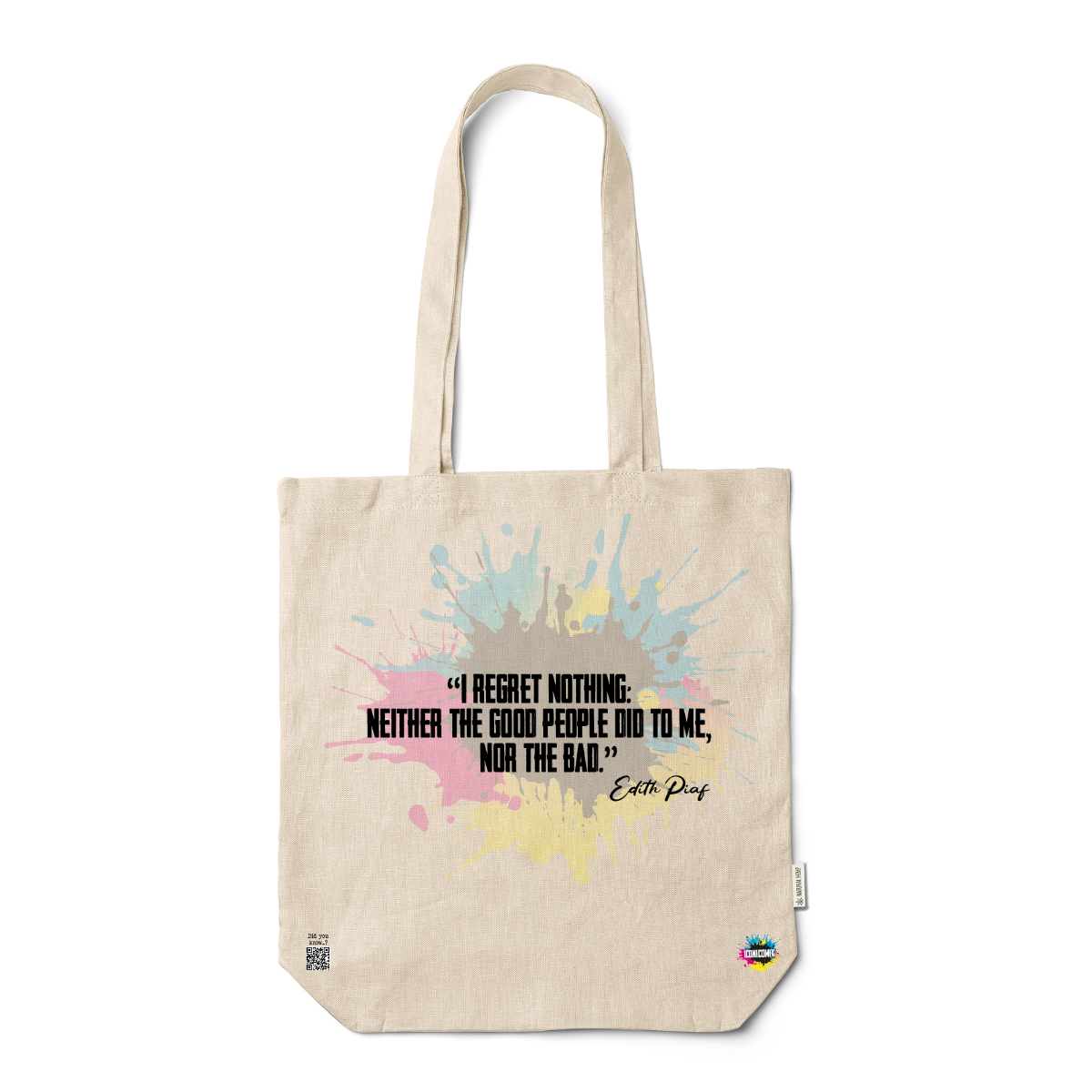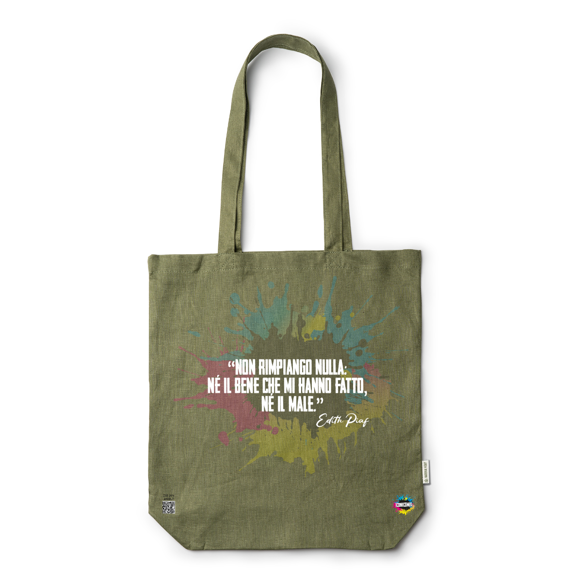 In ogni nostra grafica è presente anche un QR code che reindirizza al sito iconicomix.com, alla pagina ufficiale dell’icona che hai scelto. Una porta digitale che racconta la sua storia, le sue frasi e il suo mondo.