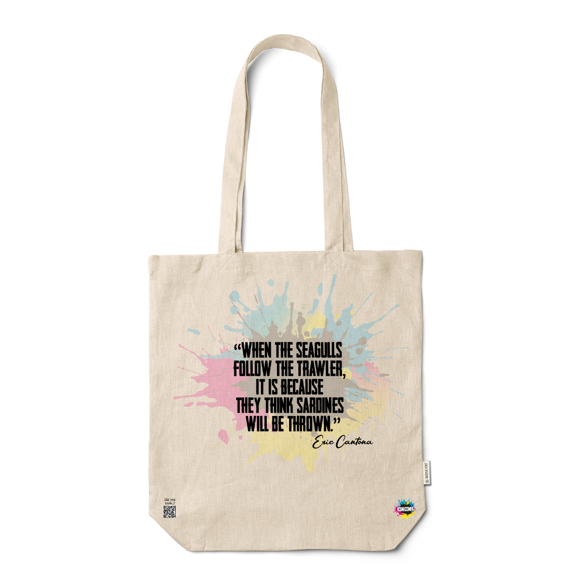 In ogni nostra grafica è presente anche un QR code che reindirizza al sito iconicomix.com, alla pagina ufficiale dell’icona che hai scelto. Una porta digitale che racconta la sua storia, le sue frasi e il suo mondo.