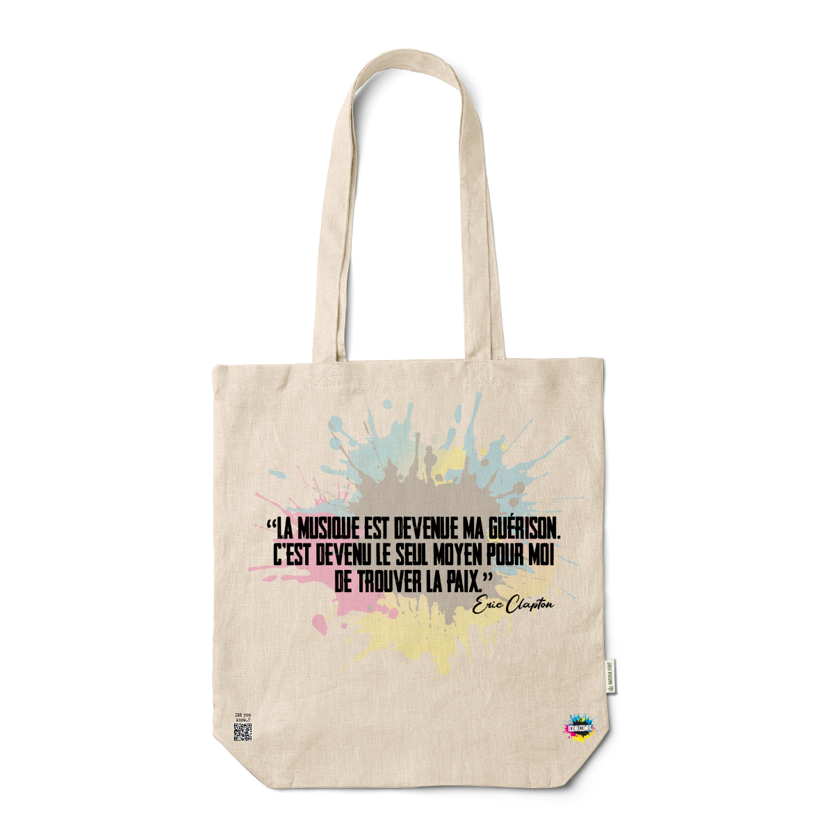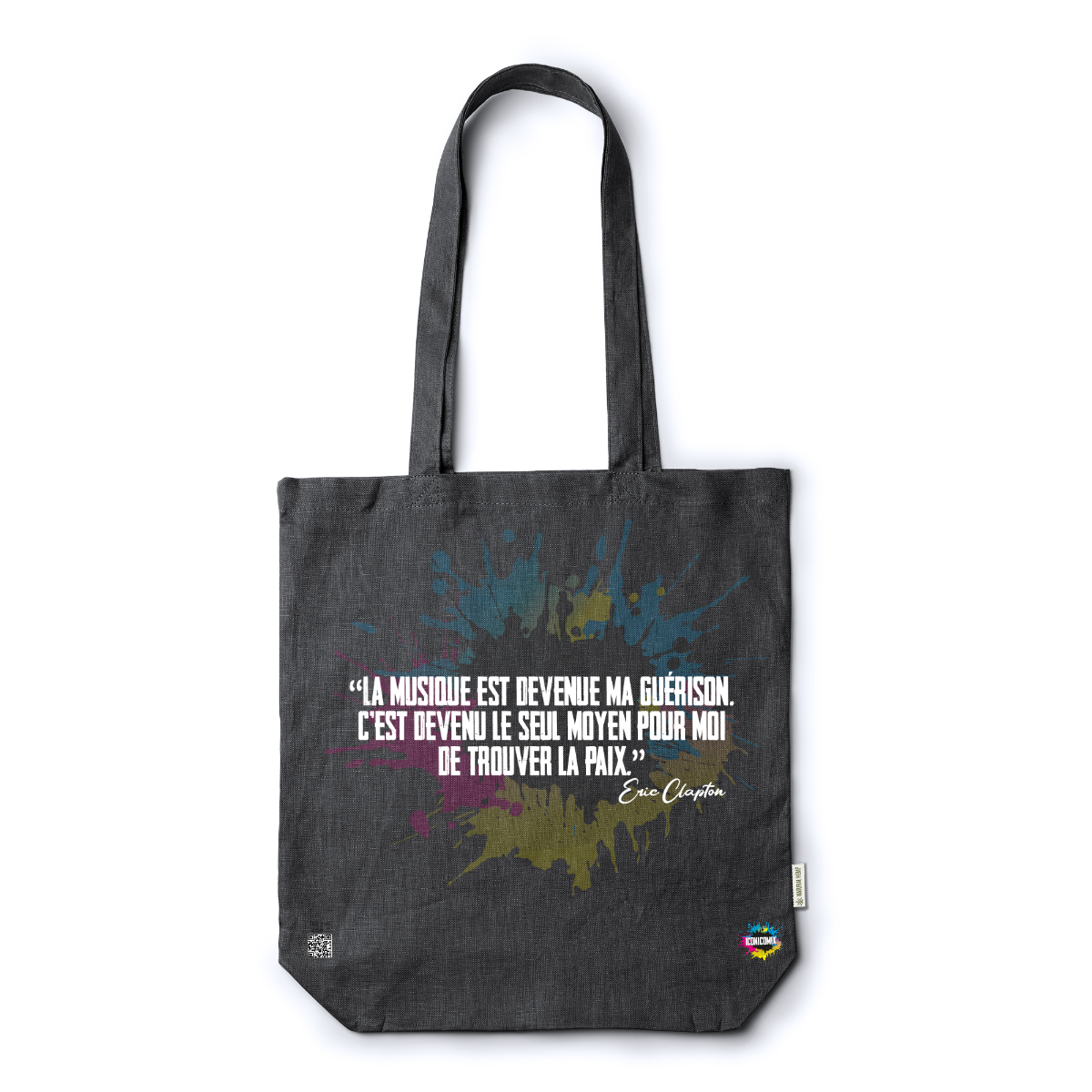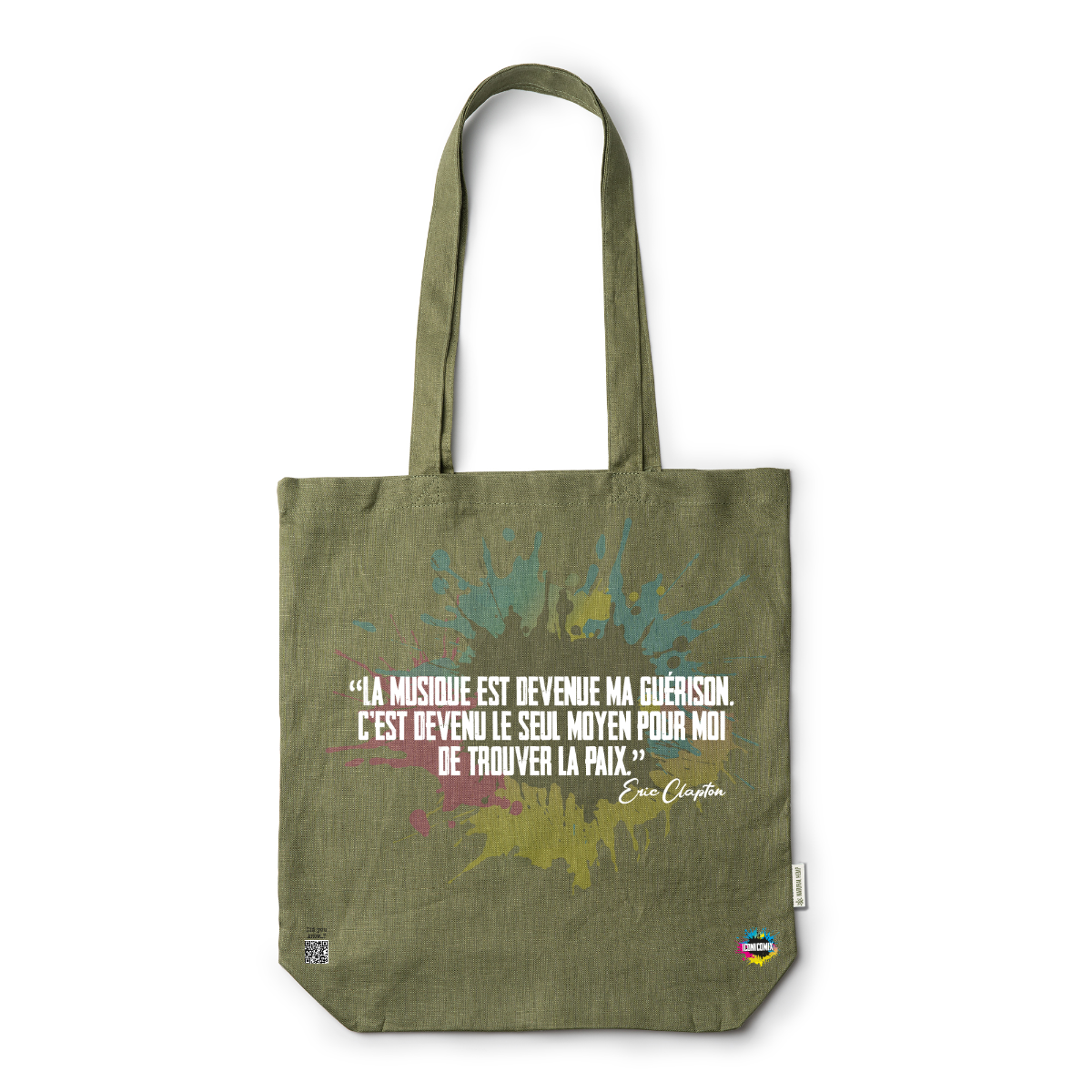 Borsa con linguetta in tessuto 100% canapa (200 g/m²). Manici rinforzati lunghi 70 cm. Misure  38cm x 10cm x 42cm. Resistente e capiente. In 4 colori