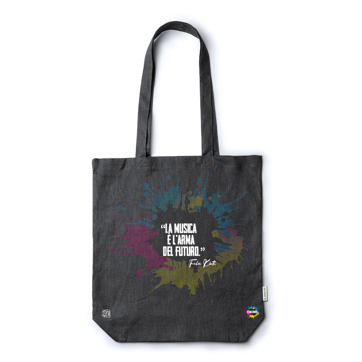 Cada uno de nuestros diseños incluye un código QR que te redirige a iconicomix.com, la página oficial del icono que has elegido. Un portal digital que narra su historia, sus frases y su universo.
