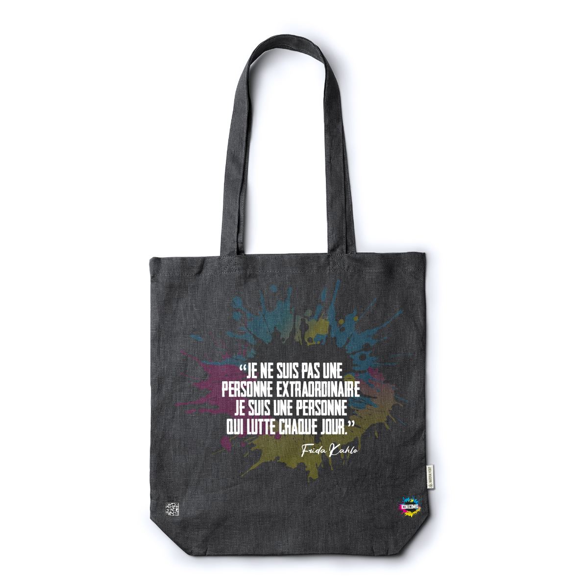 Borsa con linguetta in tessuto 100% canapa (200 g/m²). Manici rinforzati lunghi 70 cm. Misure  38cm x 10cm x 42cm. Resistente e capiente. In 4 colori