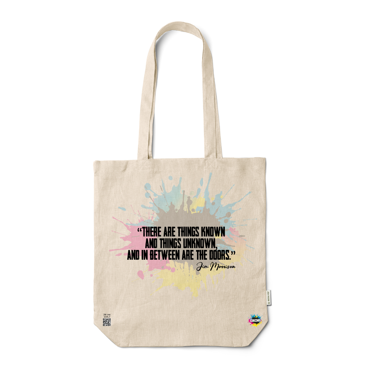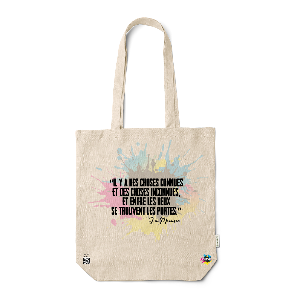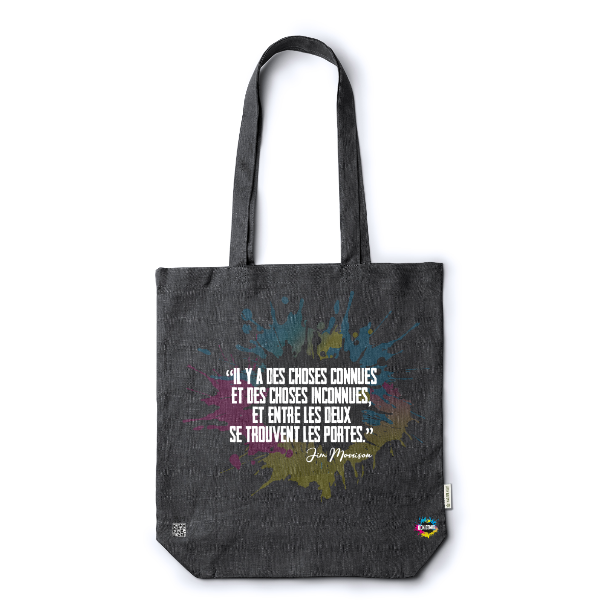 In ogni nostra grafica è presente anche un QR code che reindirizza al sito iconicomix.com, alla pagina ufficiale dell’icona che hai scelto. Una porta digitale che racconta la sua storia, le sue frasi e il suo mondo.