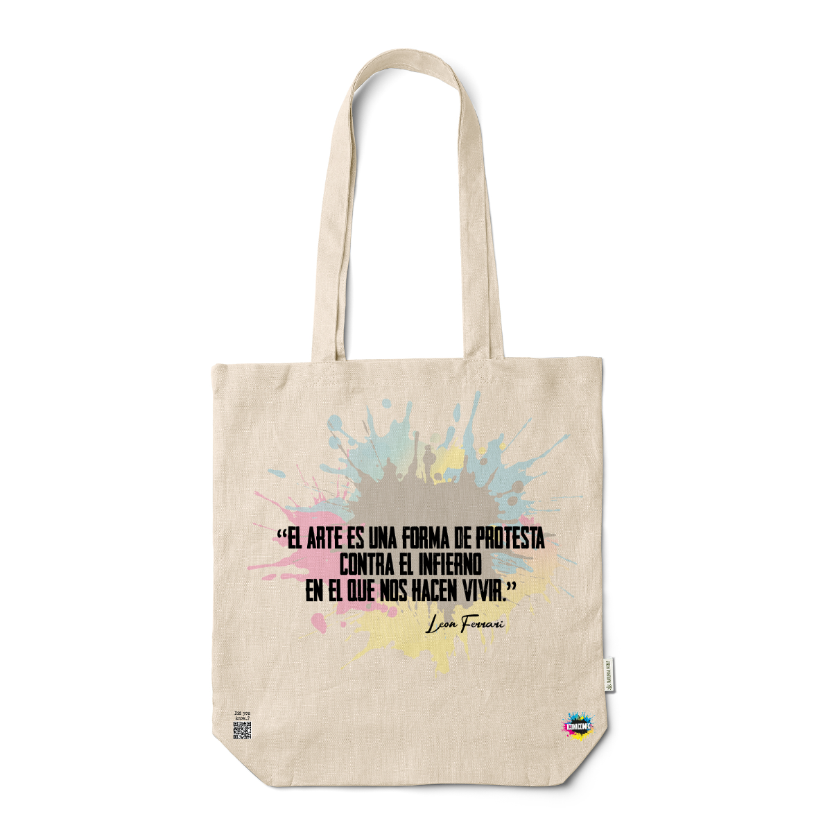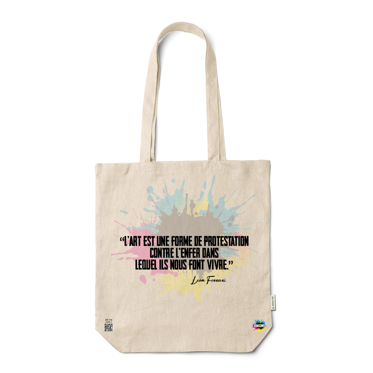 Borsa con linguetta in tessuto 100% canapa (200 g/m²). Manici rinforzati lunghi 70 cm. Misure  38cm x 10cm x 42cm. Resistente e capiente. In 4 colori