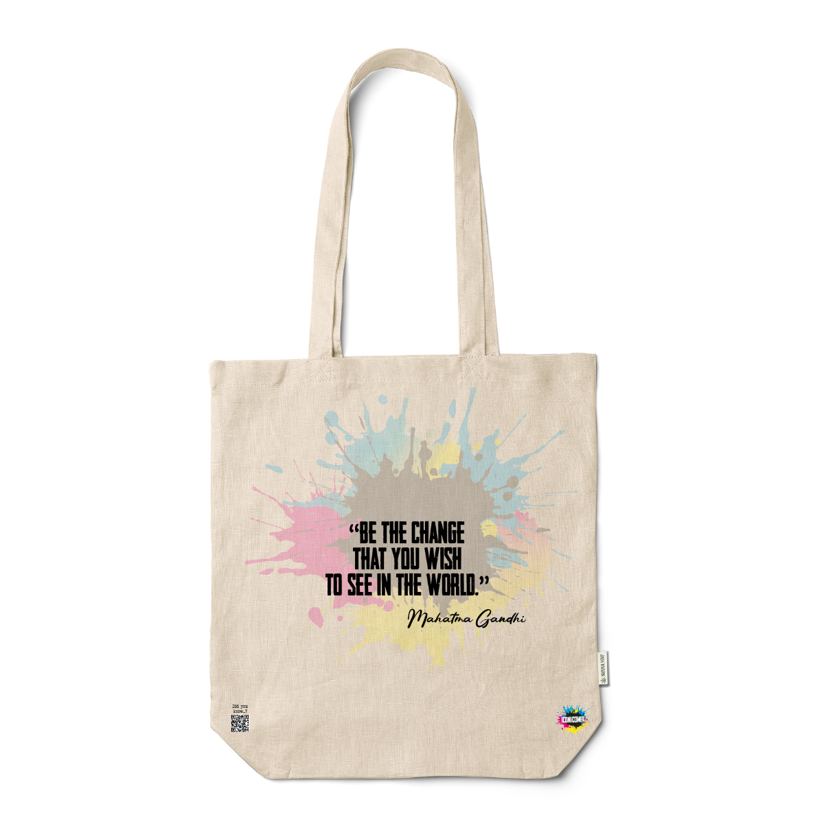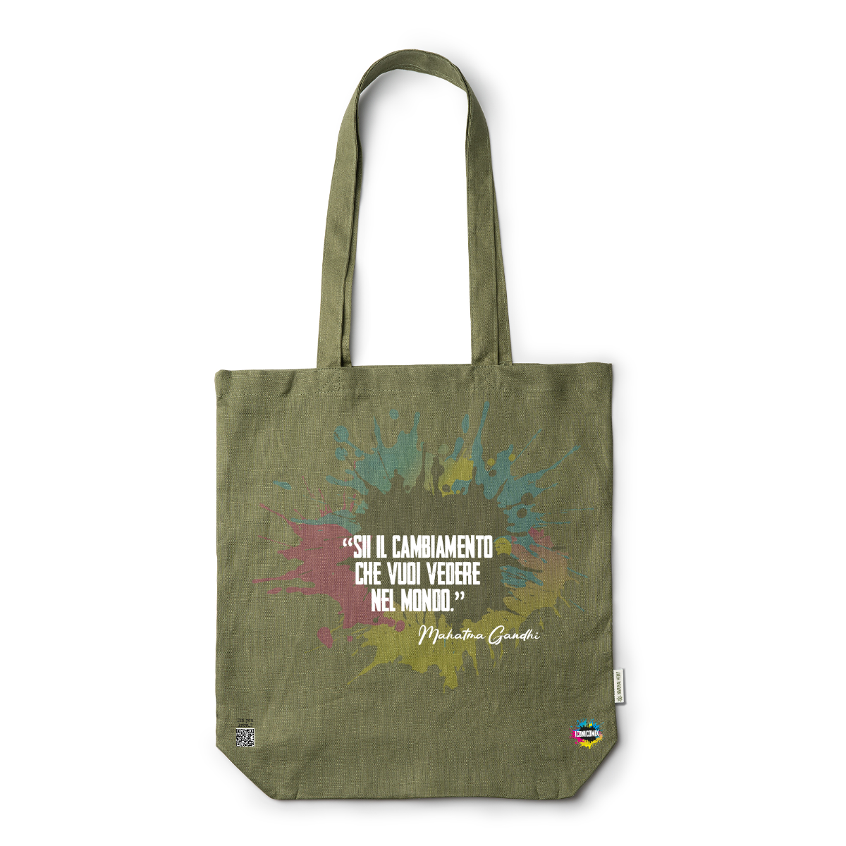 Bolsa de tela 100% cáñamo con solapa (200 g/m²). Asas reforzadas de 70 cm de largo. Dimensiones: 38 cm x 10 cm x 42 cm. Resistente y espaciosa. Disponible en 4 colores.