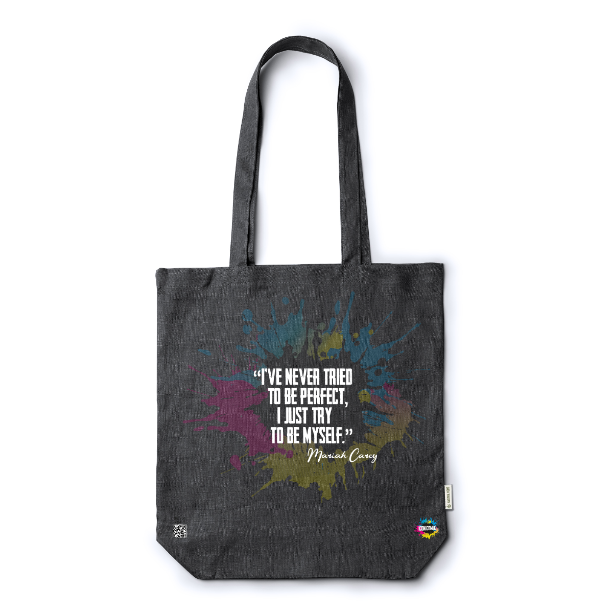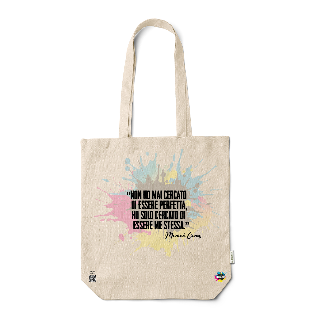 In ogni nostra grafica è presente anche un QR code che reindirizza al sito iconicomix.com, alla pagina ufficiale dell’icona che hai scelto. Una porta digitale che racconta la sua storia, le sue frasi e il suo mondo.