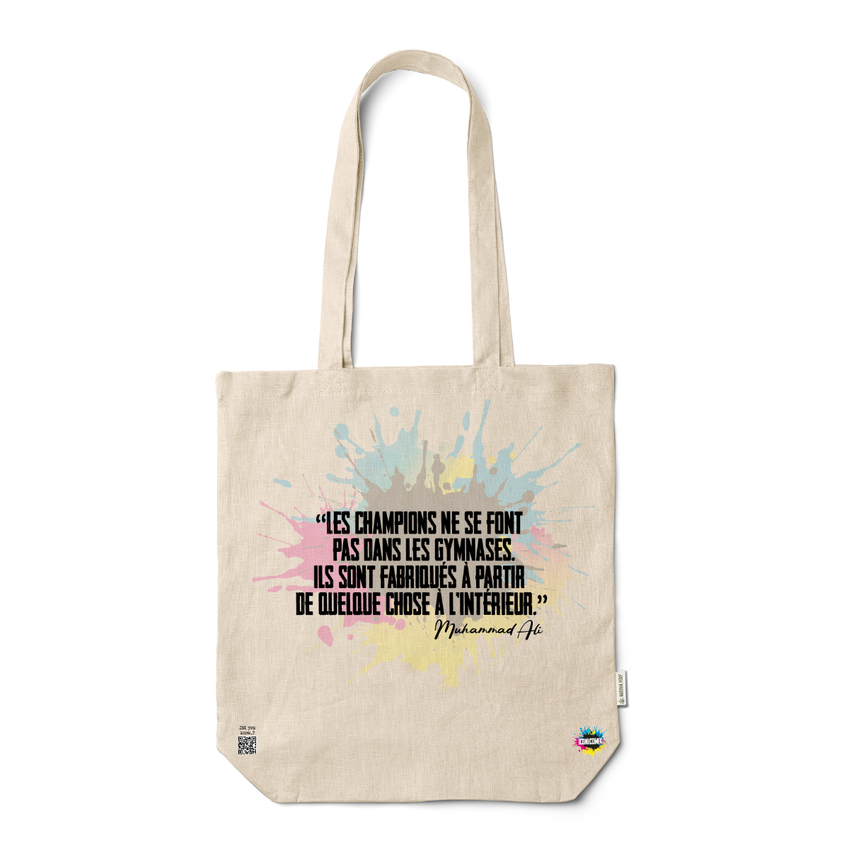 Borsa con linguetta in tessuto 100% canapa (200 g/m²). Manici rinforzati lunghi 70 cm. Misure  38cm x 10cm x 42cm. Resistente e capiente. In 4 colori