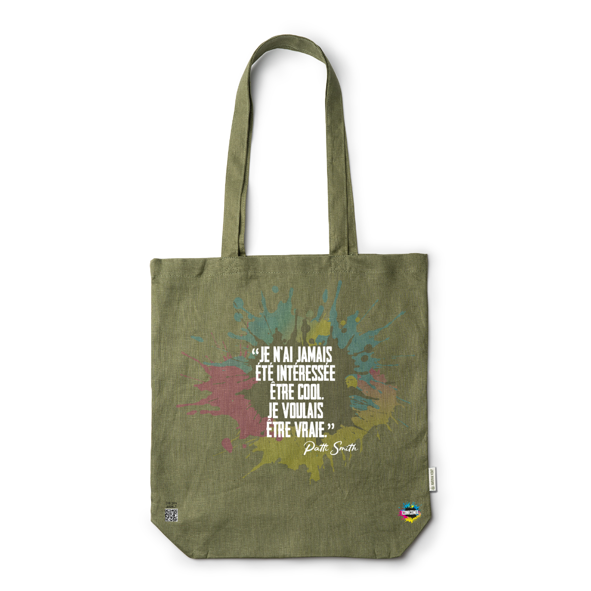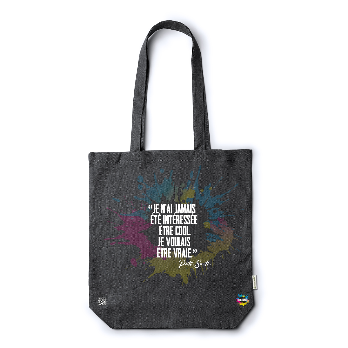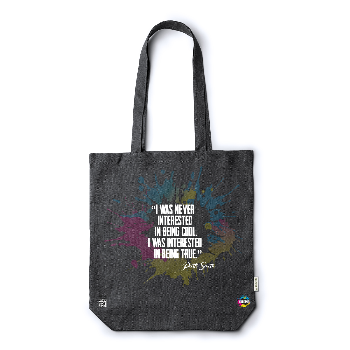 In ogni nostra grafica è presente anche un QR code che reindirizza al sito iconicomix.com, alla pagina ufficiale dell’icona che hai scelto. Una porta digitale che racconta la sua storia, le sue frasi e il suo mondo.