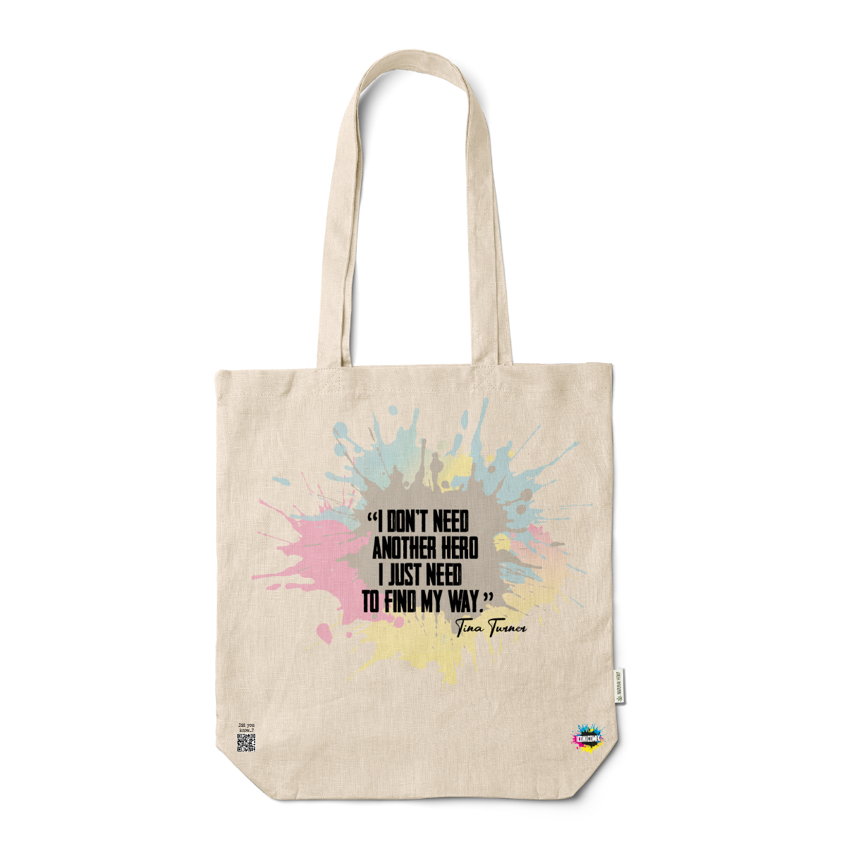 In ogni nostra grafica è presente anche un QR code che reindirizza al sito iconicomix.com, alla pagina ufficiale dell’icona che hai scelto. Una porta digitale che racconta la sua storia, le sue frasi e il suo mondo.