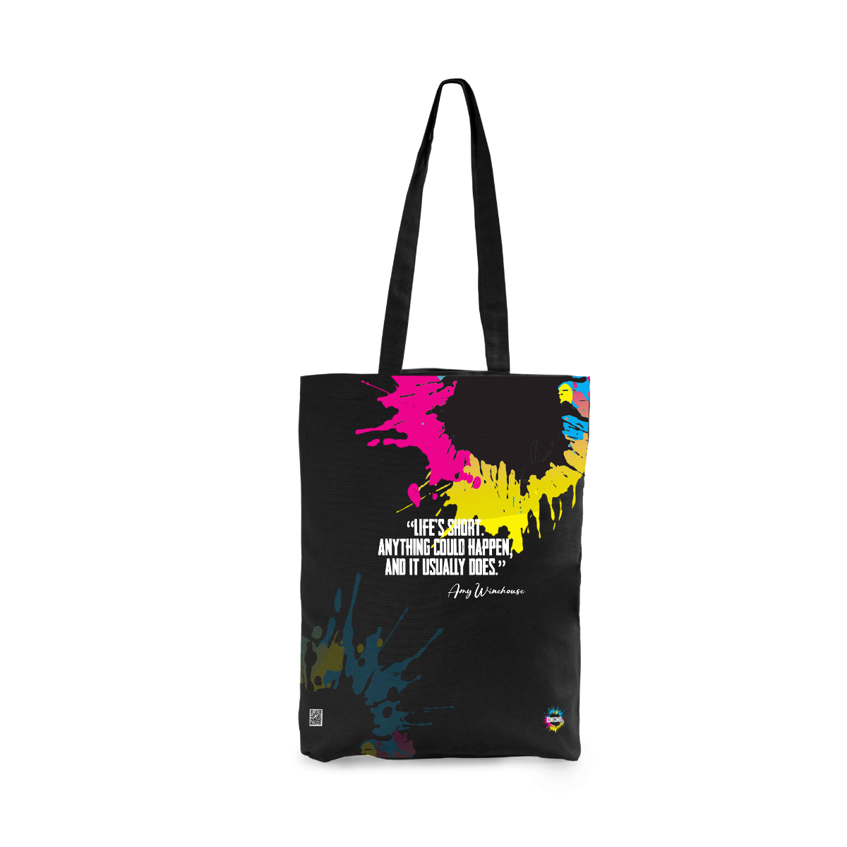 Bolsa de algodón 100 % orgánico, 270 g/m², coloreada con borlas en la base. Asa de hombro de 70 cm. Dimensiones: 38 cm / 42 cm / 9 cm.